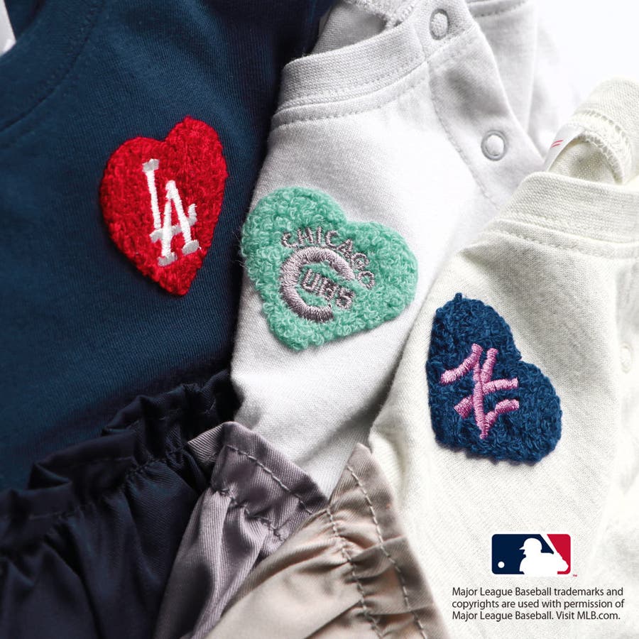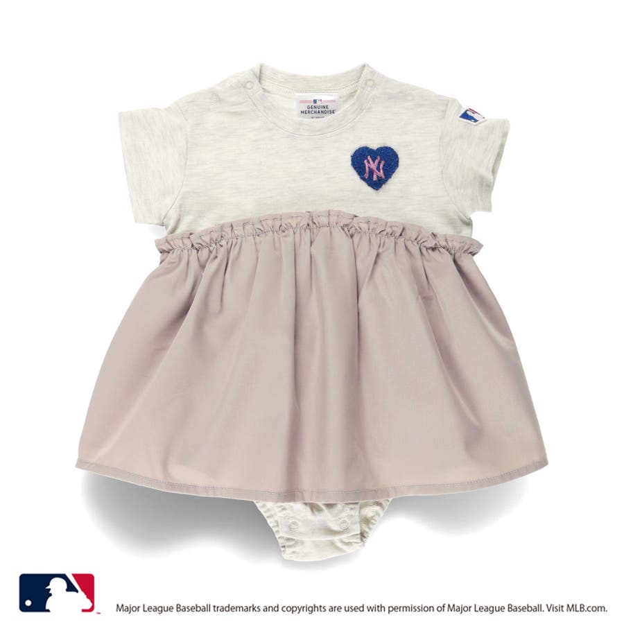 ハートのサガラワッペンがポイントのドッキングワンピース風カバーオールです。
