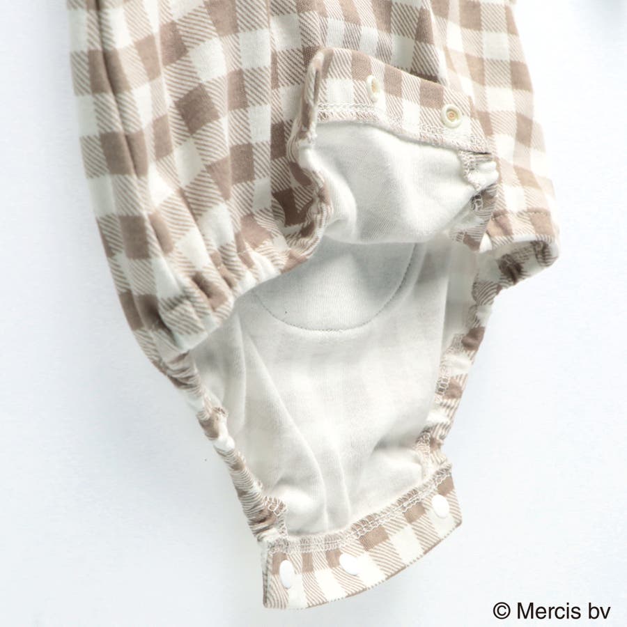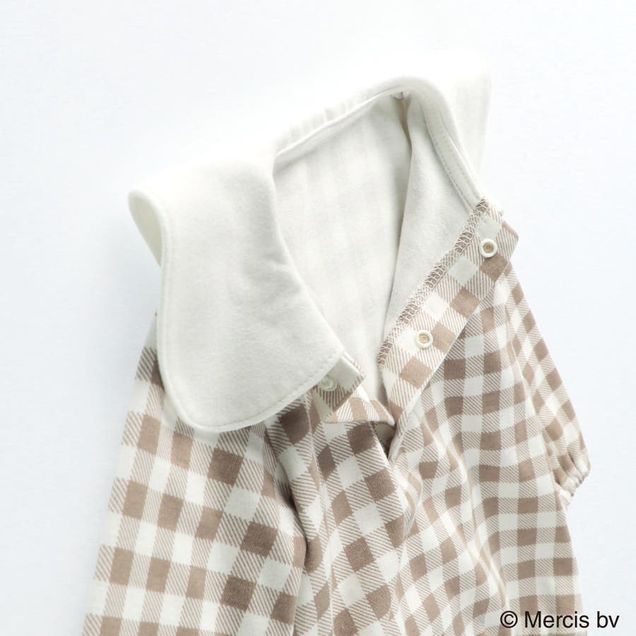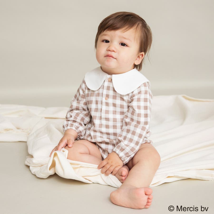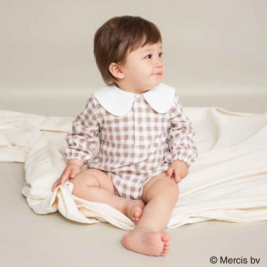 チェック柄の優しい色合いが、お子さまの肌になじんで