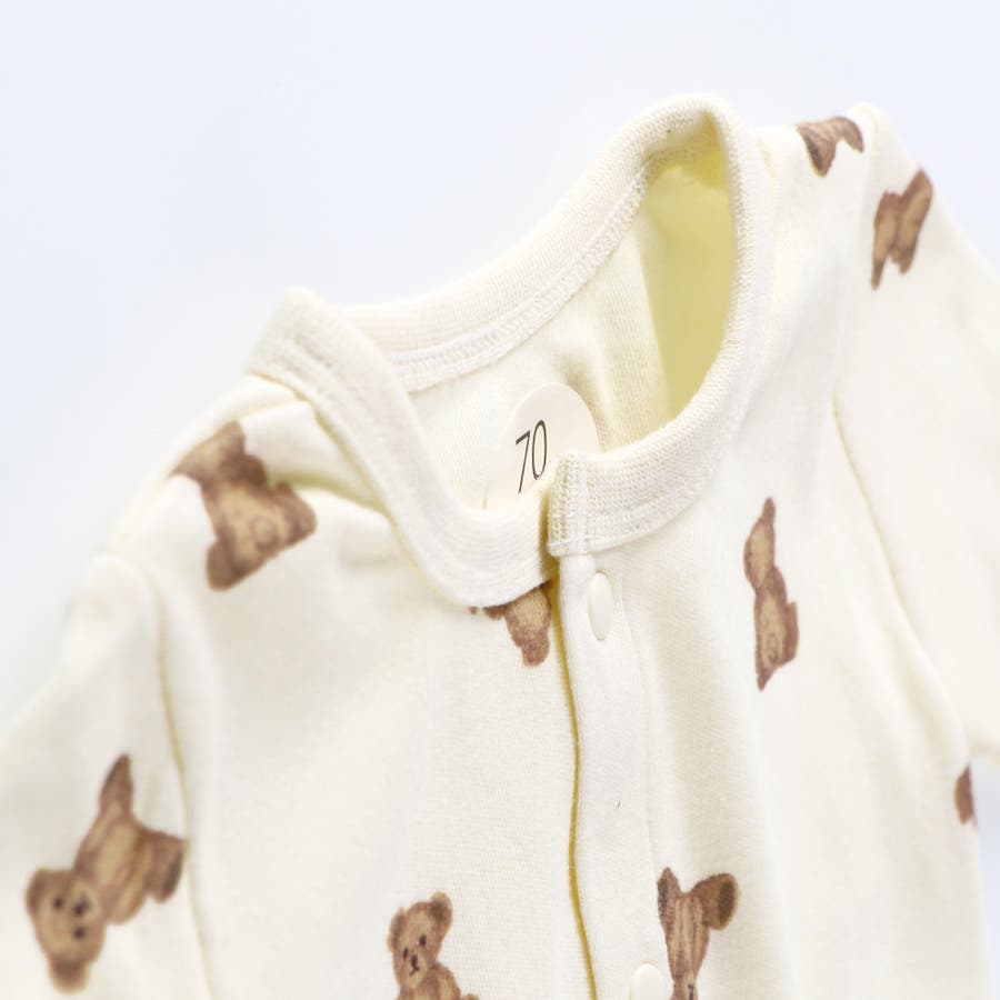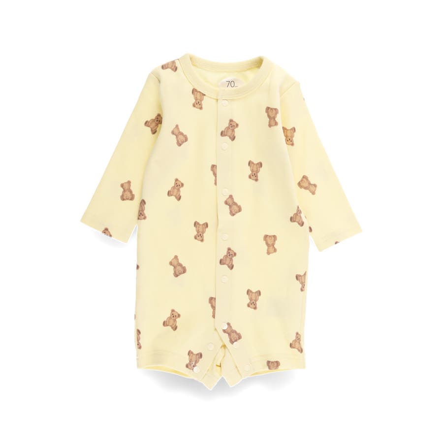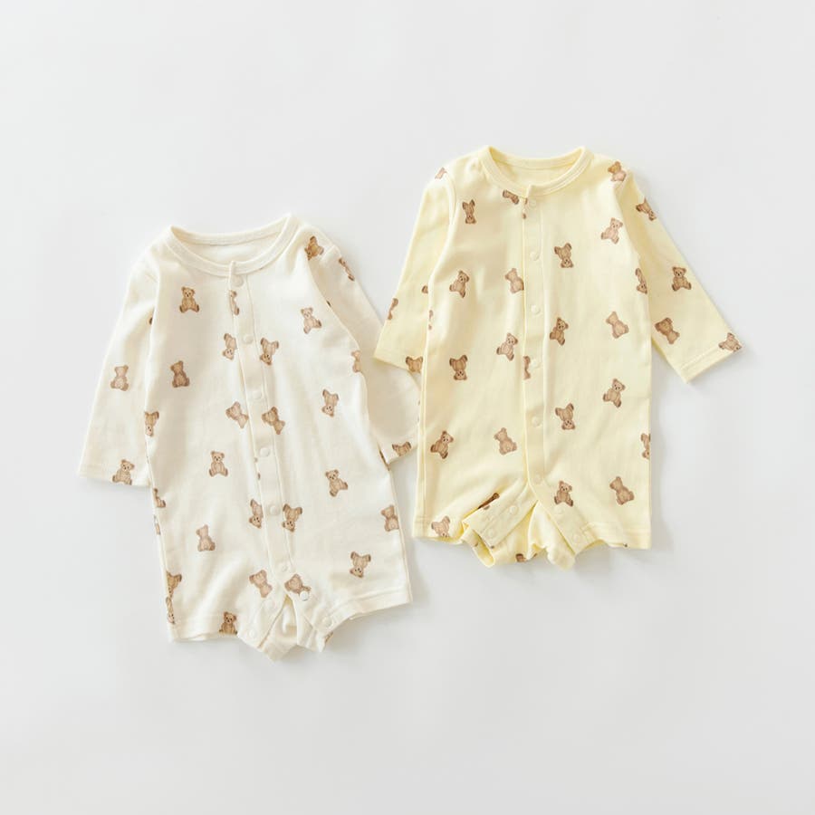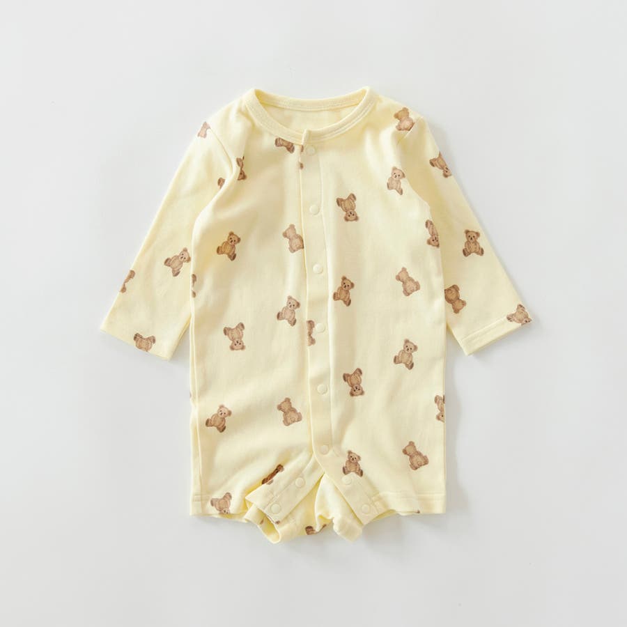 くまちゃんの総柄がかわいい長袖カバーオールです