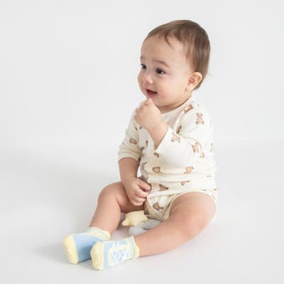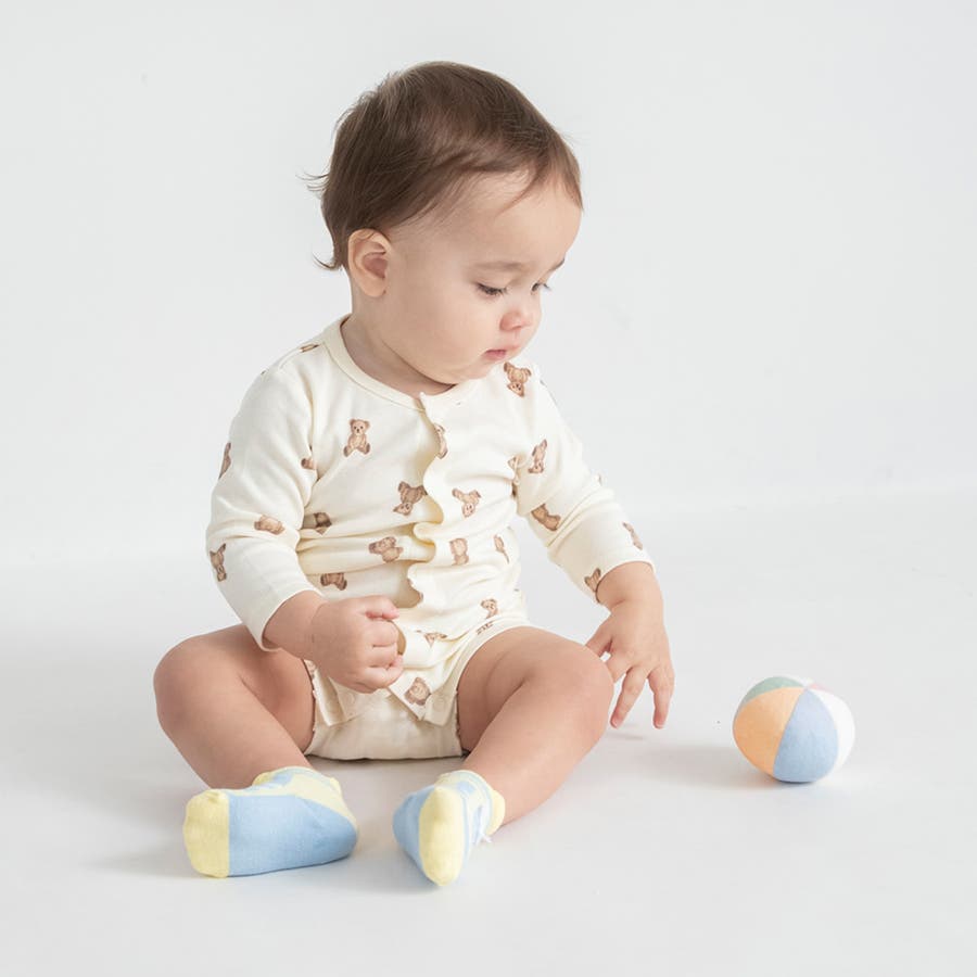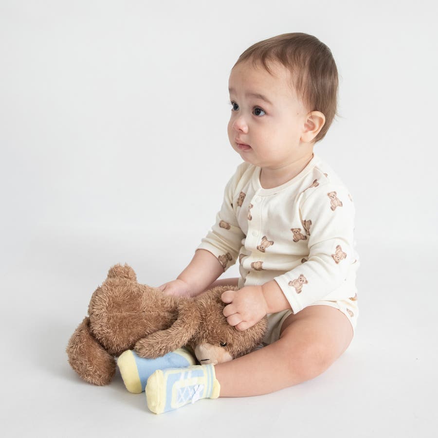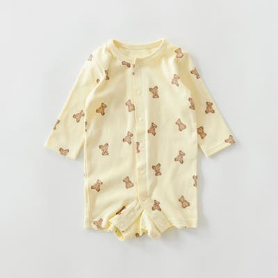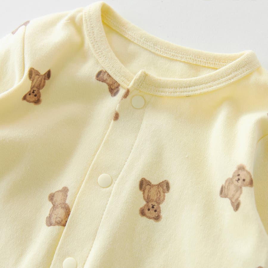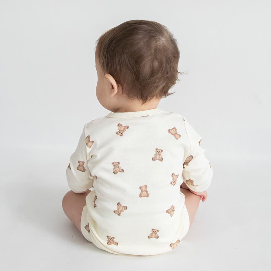 くまちゃんの総柄がかわいい長袖カバーオールです