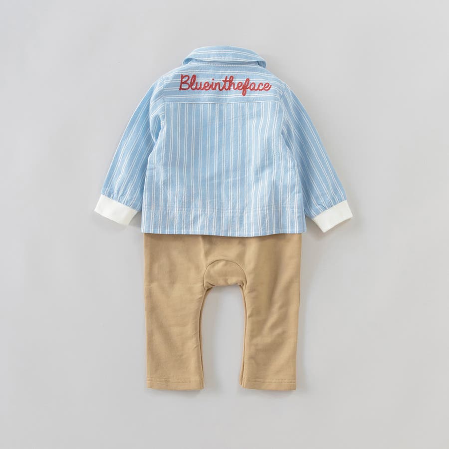 ベビー男児:01-6139-304 【おそろい】ストライプ柄ロゴ刺しゅうカバーオール