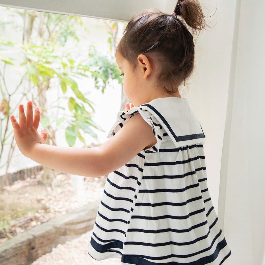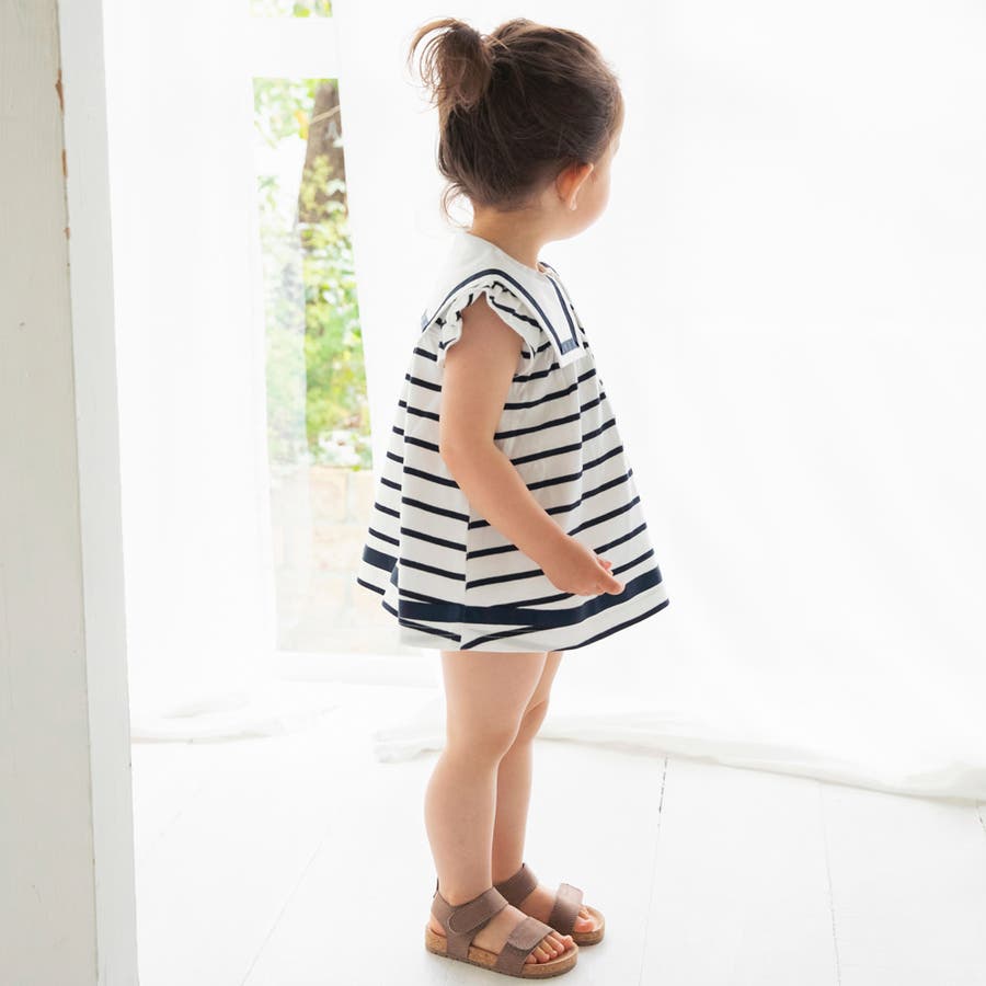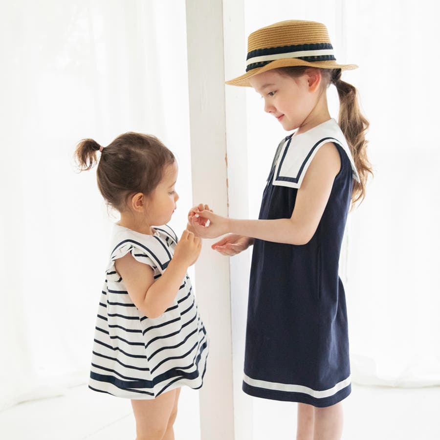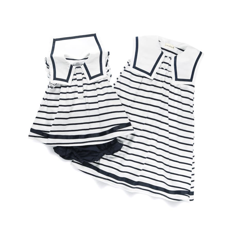 キッズ女児:12-5237-194【おそろい】セーラー襟ワンピース