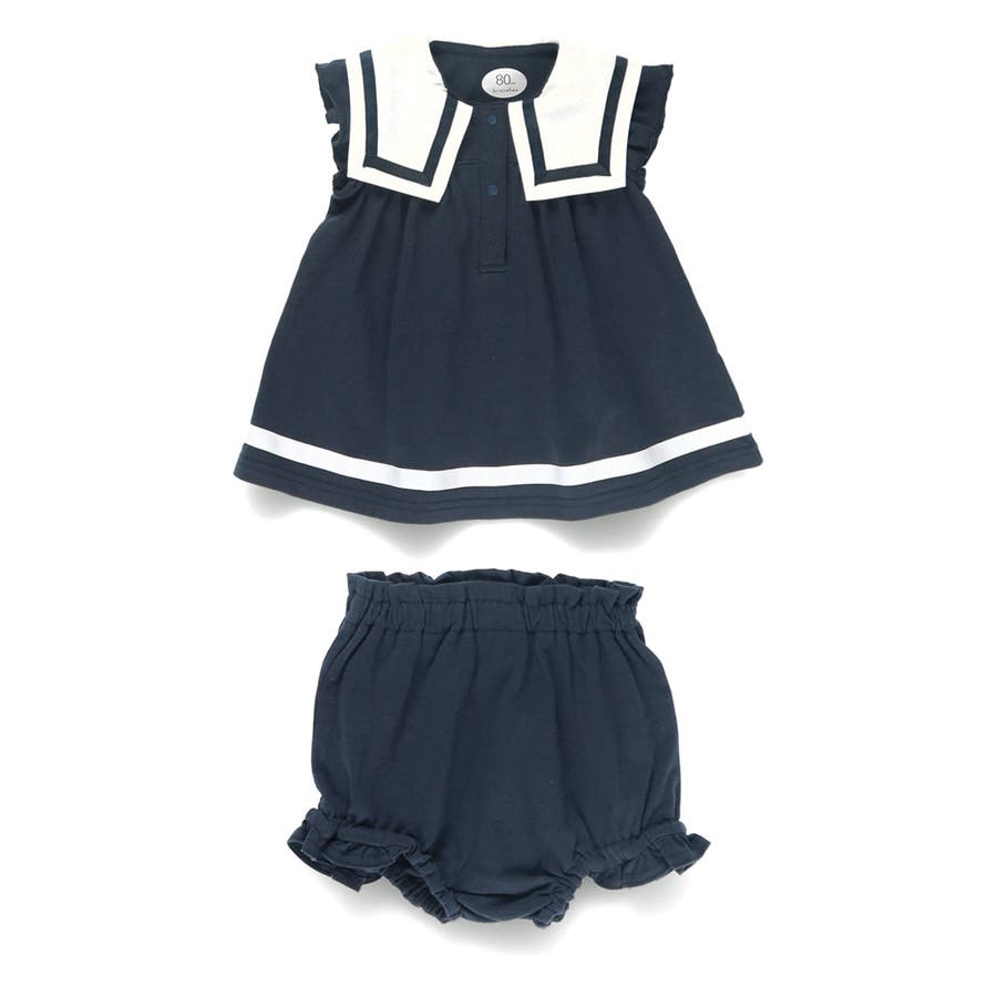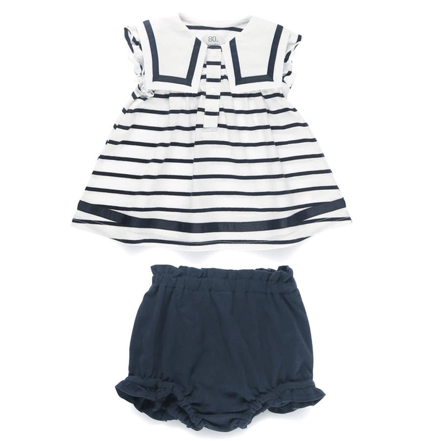 【おそろい】セーラー襟トップス&ボトムスセット ボーダー
