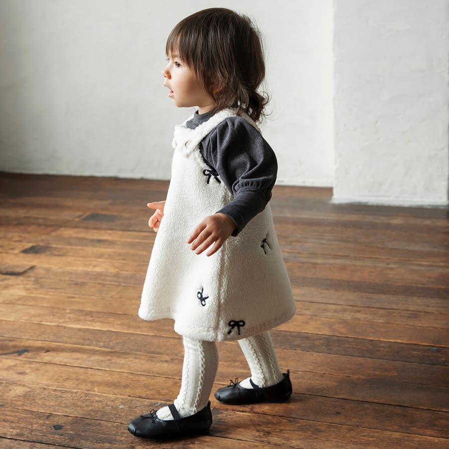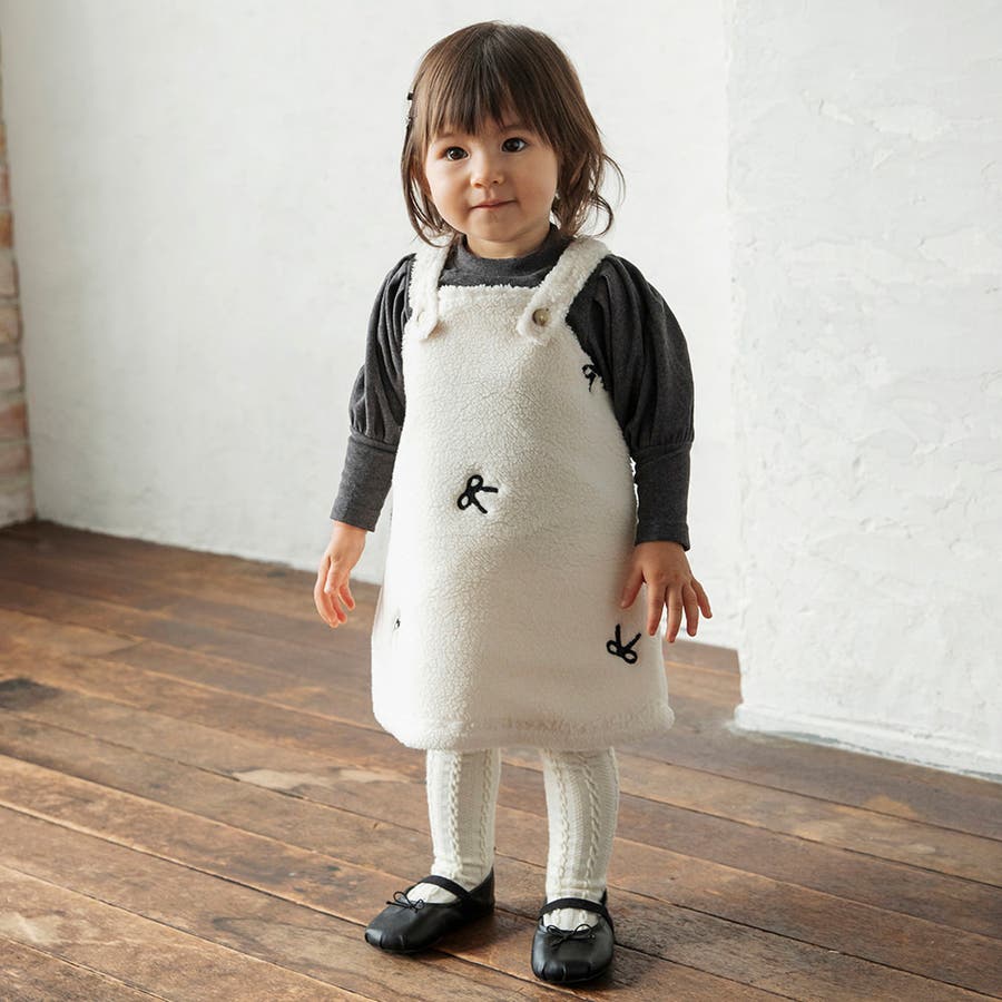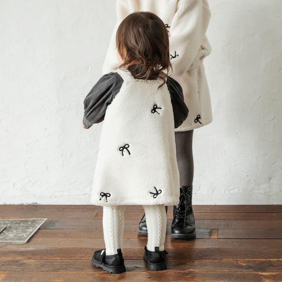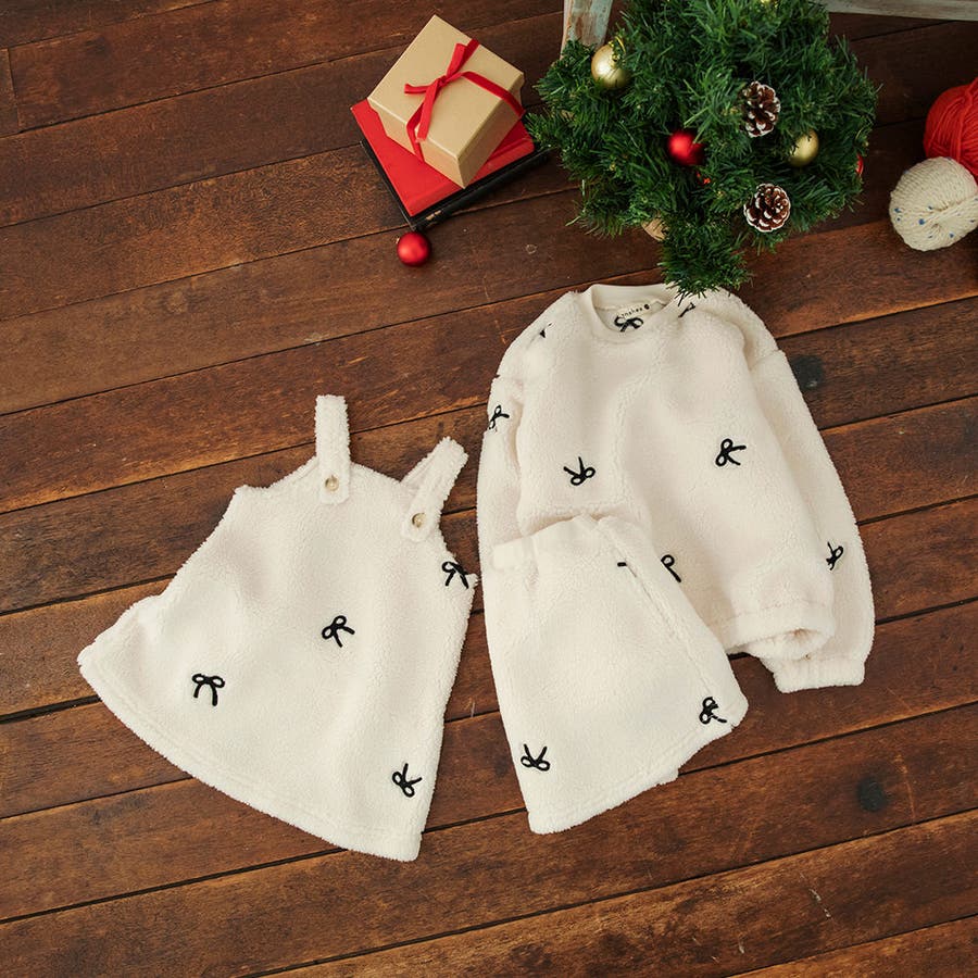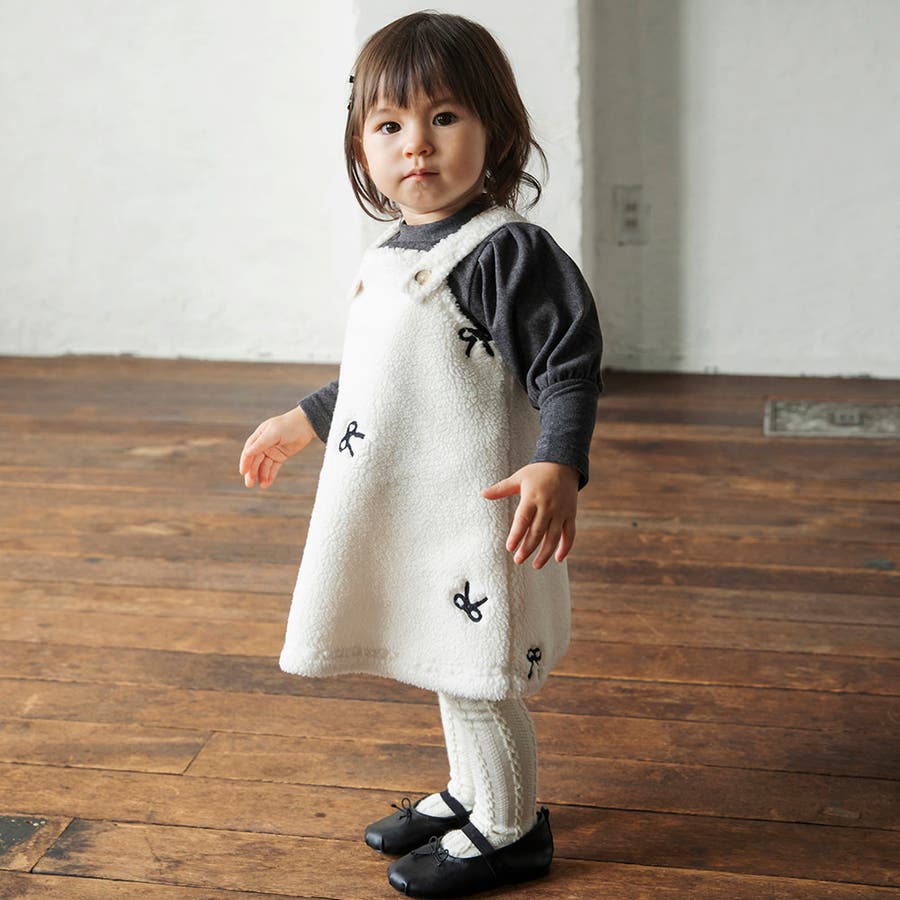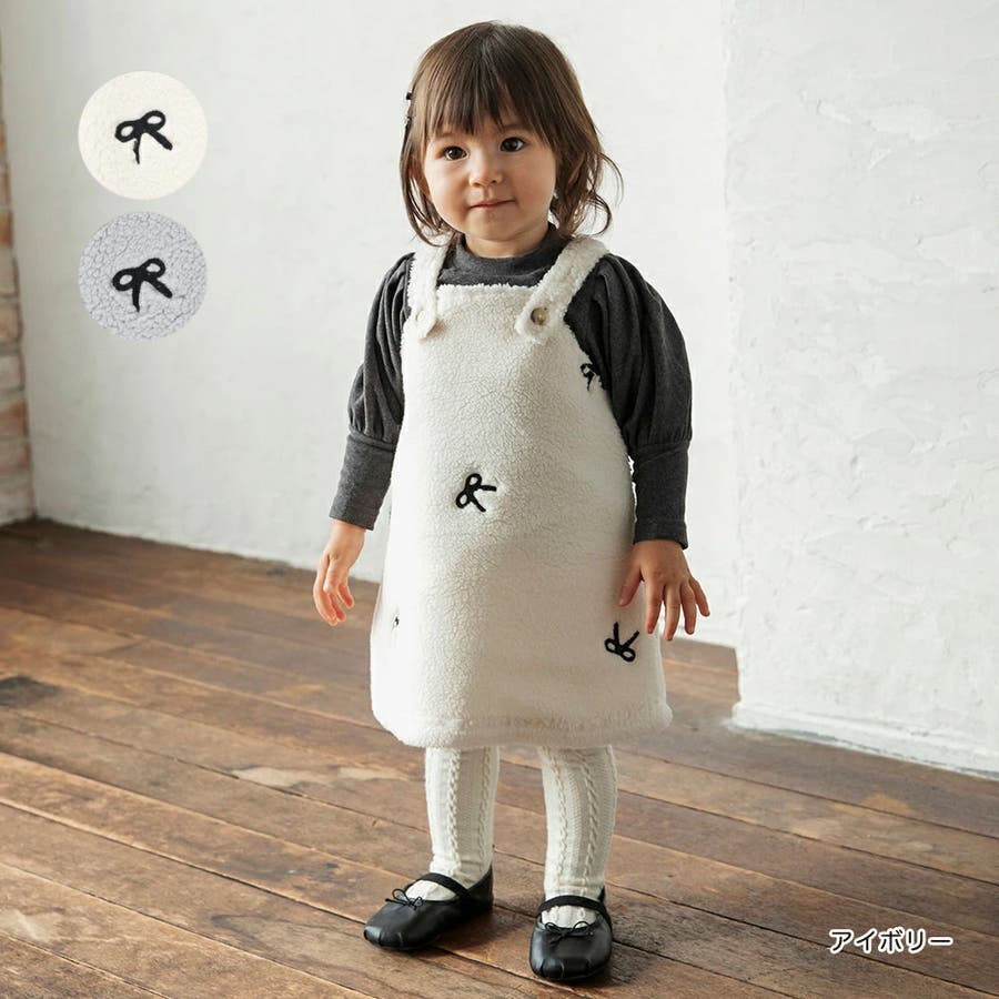 リボン総柄刺しゅうボアジャンパースカート リンクコーデ おそろい