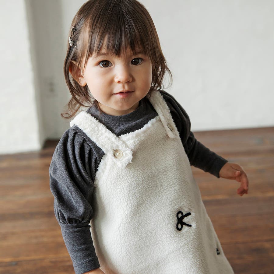 たっぷりとしたボア素材をつかったジャンパースカートです