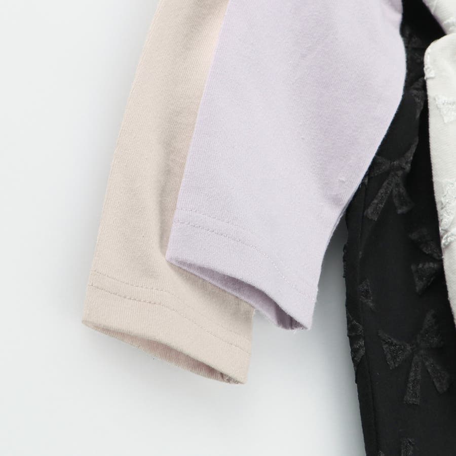 【関連商品】12-5405-067 リボン柄ドッキング長袖Tシャツ