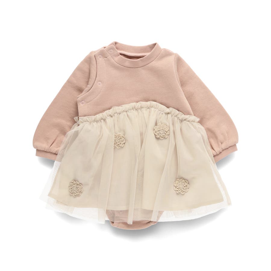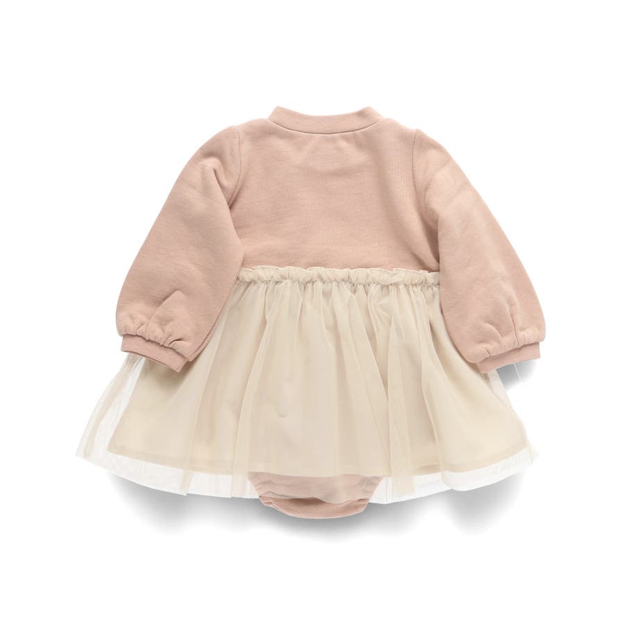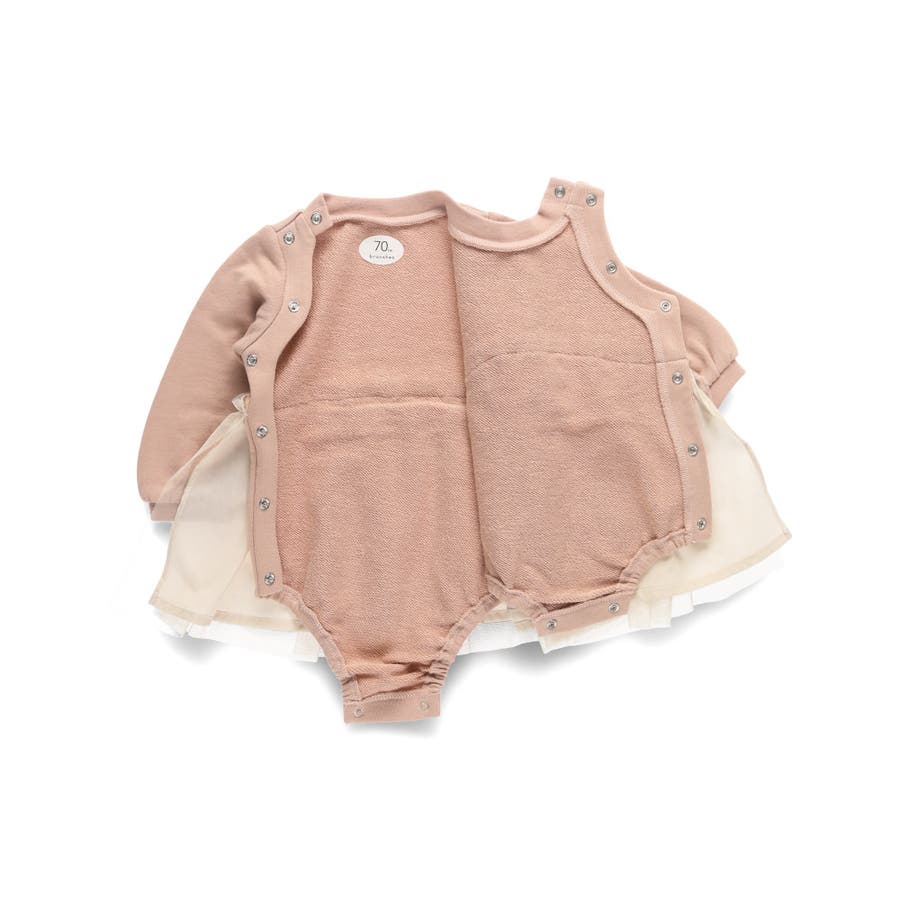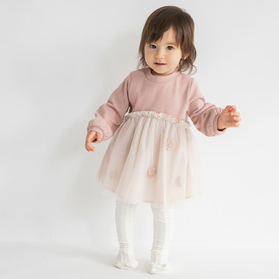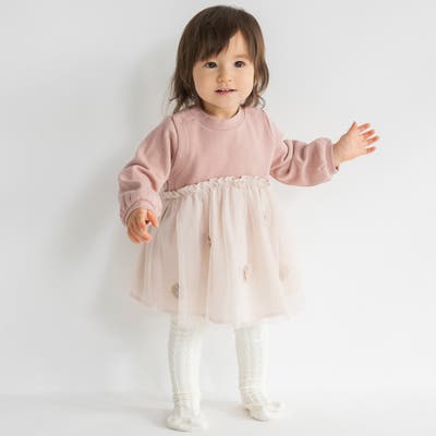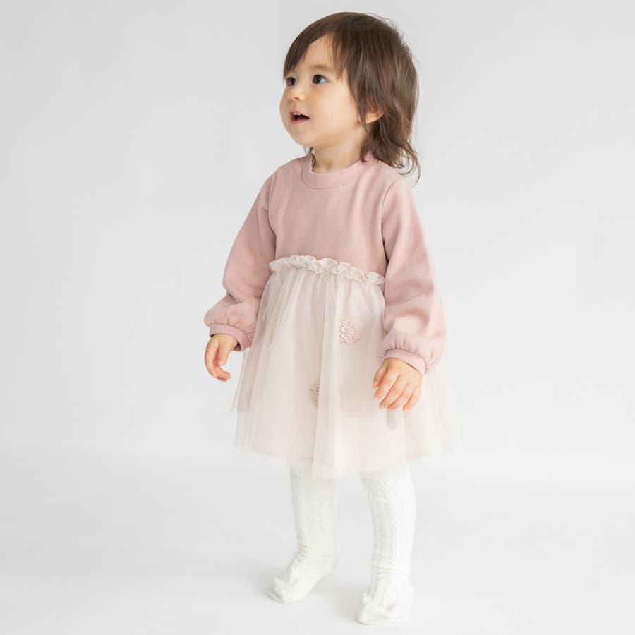素材 | 本体:綿100% チュール部分:ポリエステル100% 布帛部分:ポリエステル80% 綿20% モチーフ:ポリエステル100% リブ部分:綿95% ポリウレタン5% |