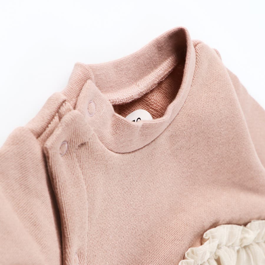 華やかさと可愛らしさを両立したフラワーモチーフ付きカバーオール