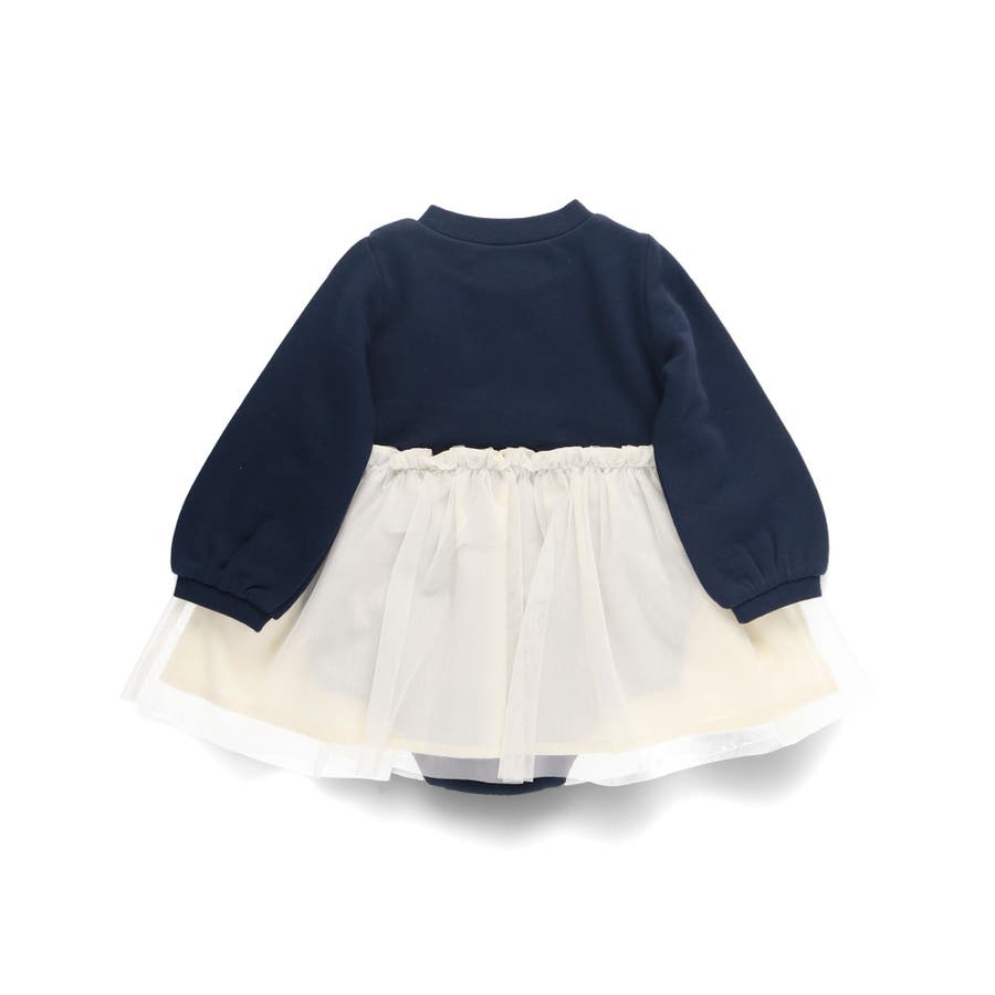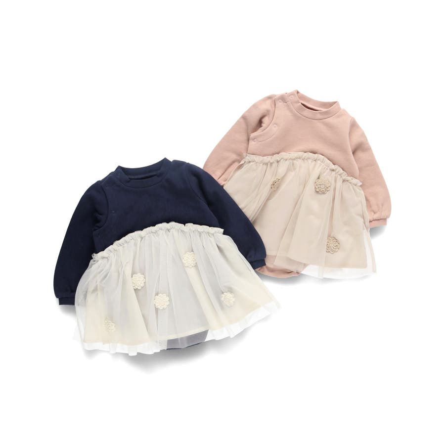 【ネイビーブルー】【おそろい】フラワーモチーフ付きカバーオール