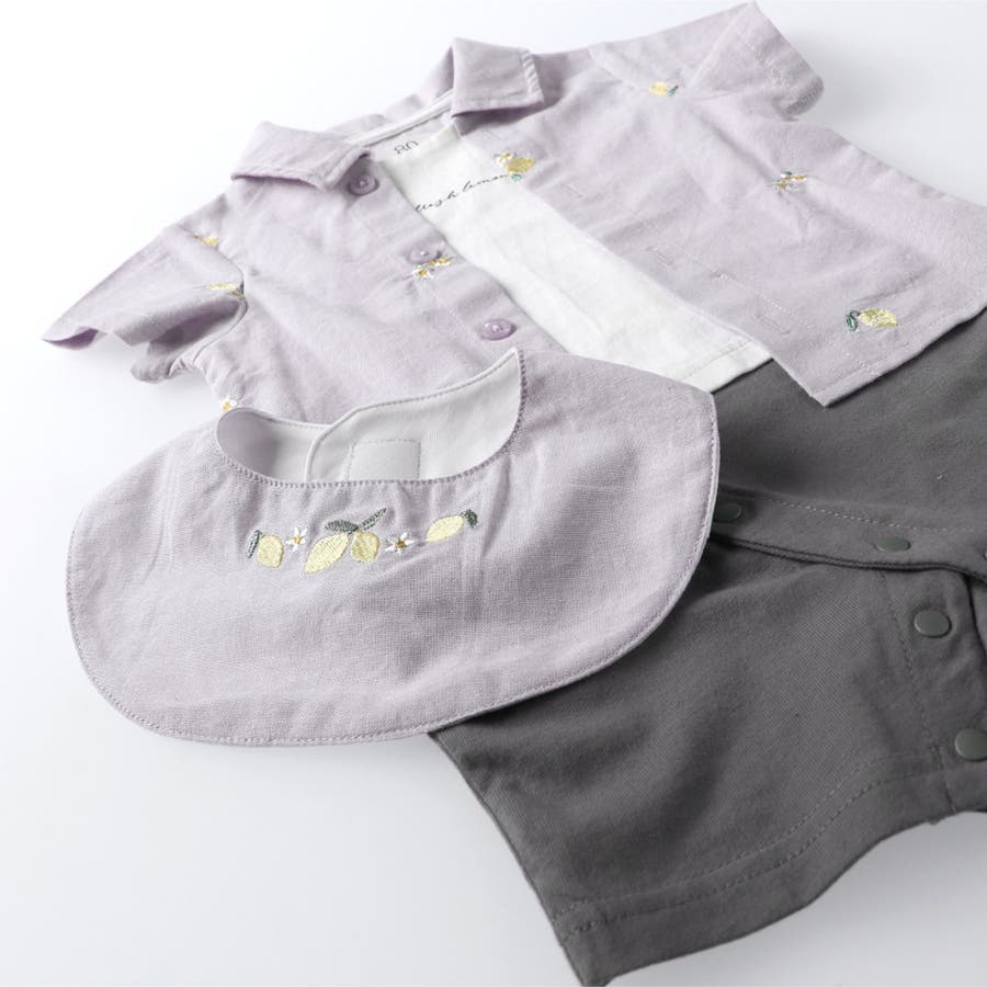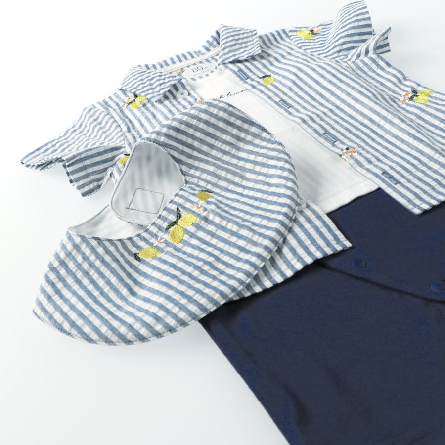 ベビー男児:01-5239-313 【おそろい】レモン&フラワー総柄刺しゅう半袖カバーオール