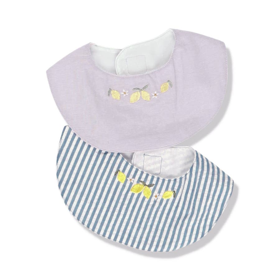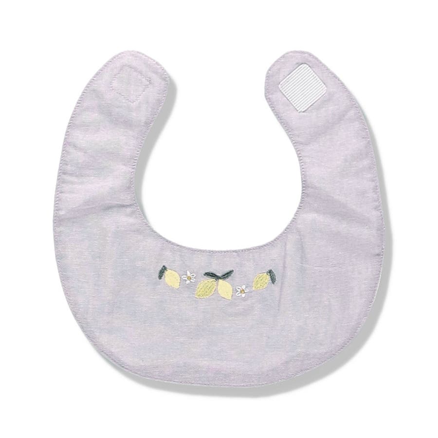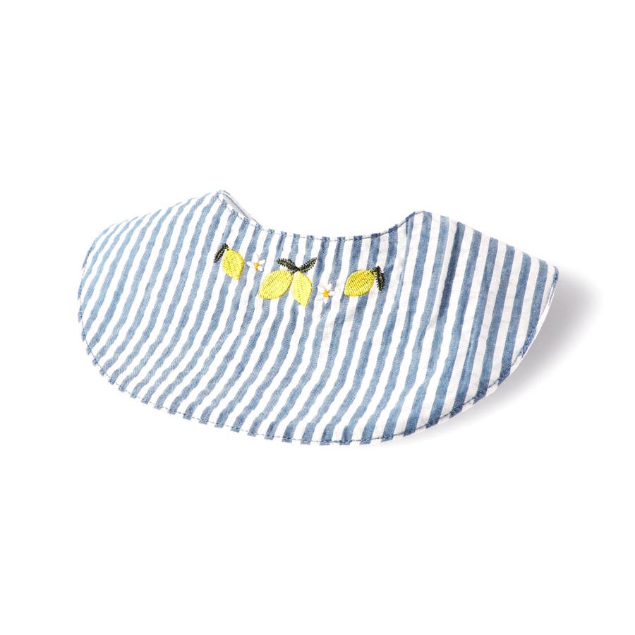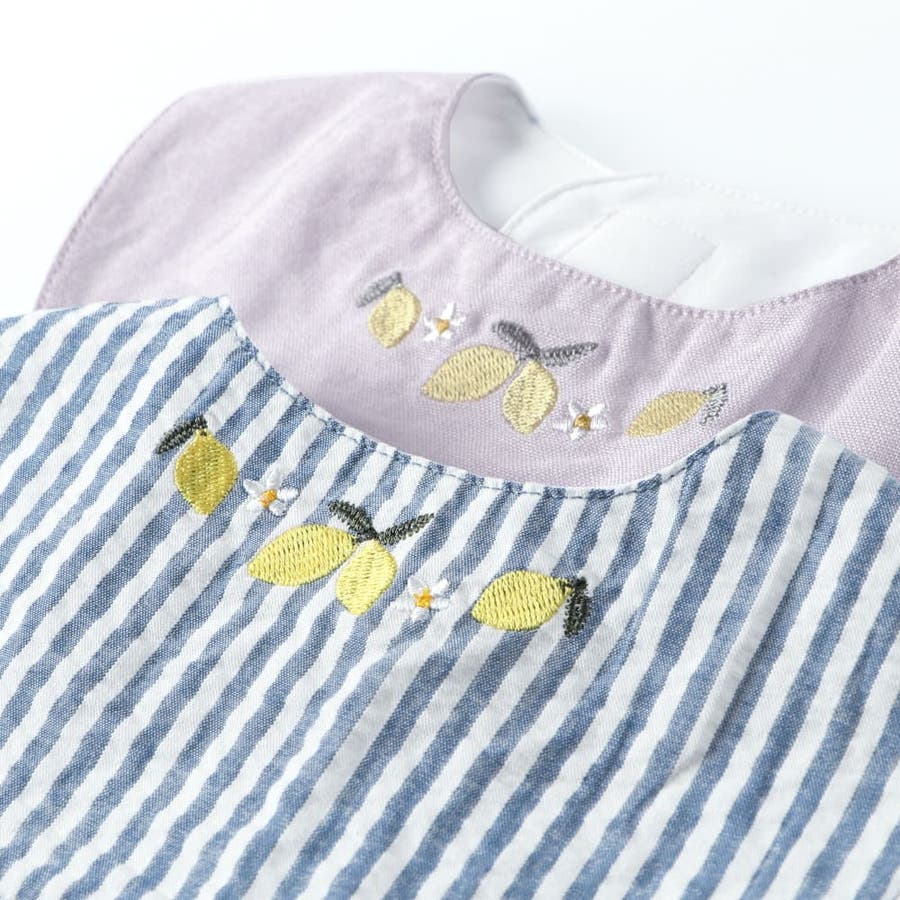 ベビー雑貨:04-5276-668 【おそろい】レモン&フラワー総柄刺しゅうスタイ