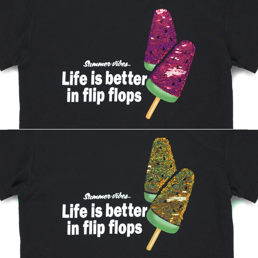 【接触冷感/アイスT】スパンコール半袖Tシャツ