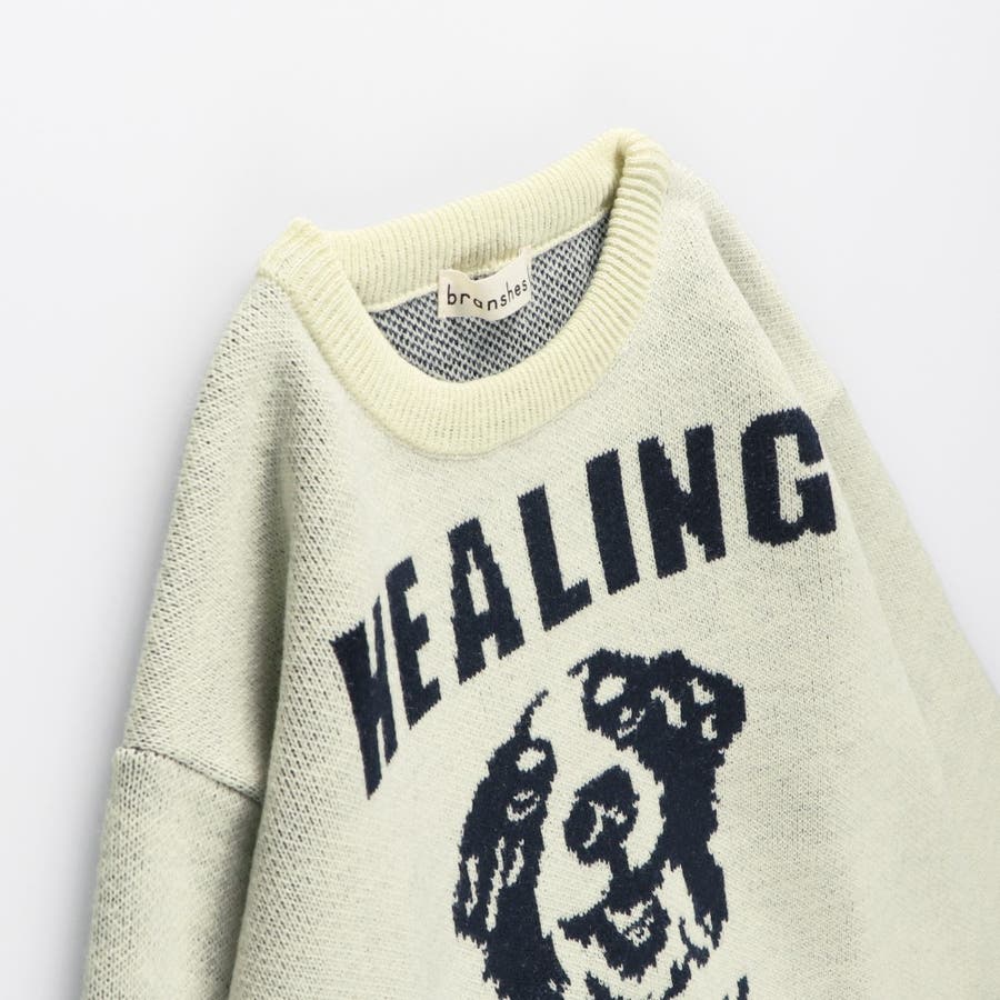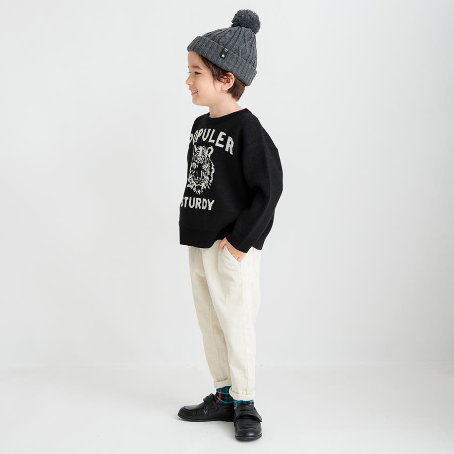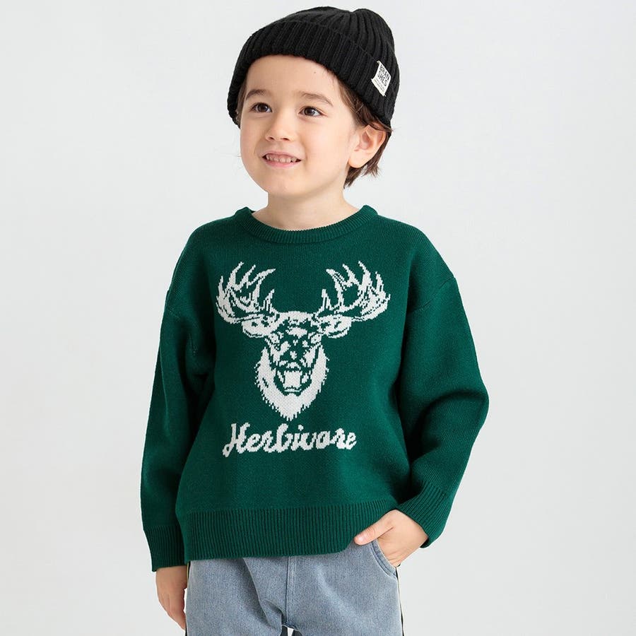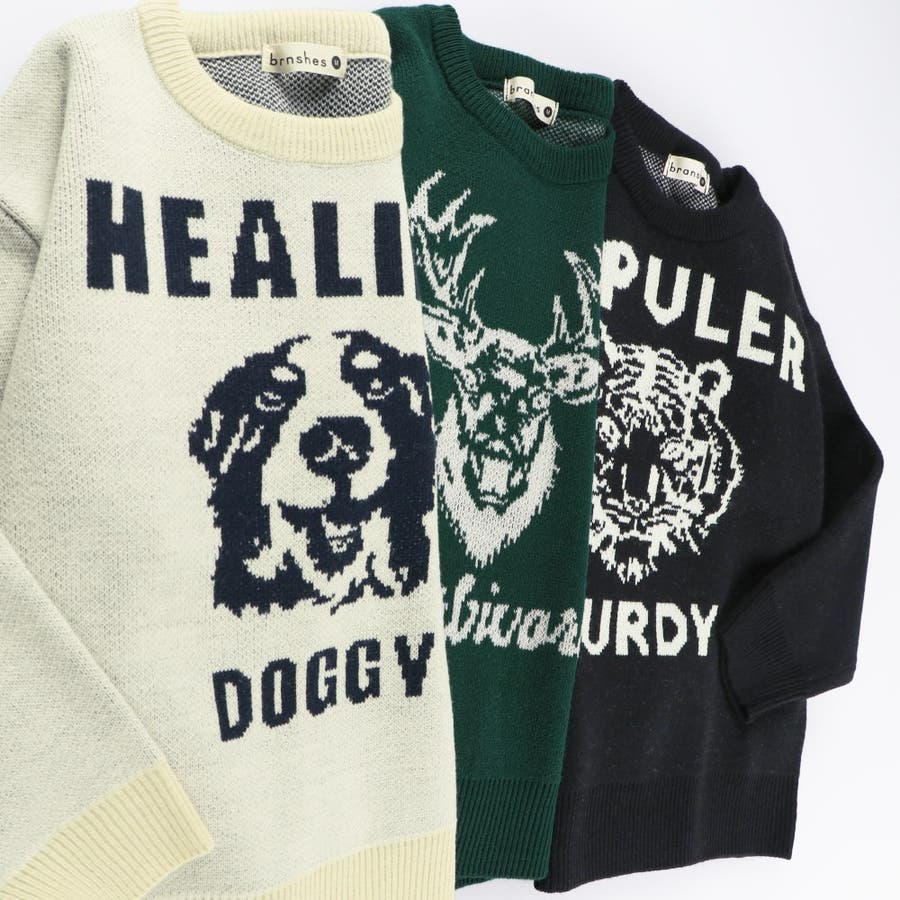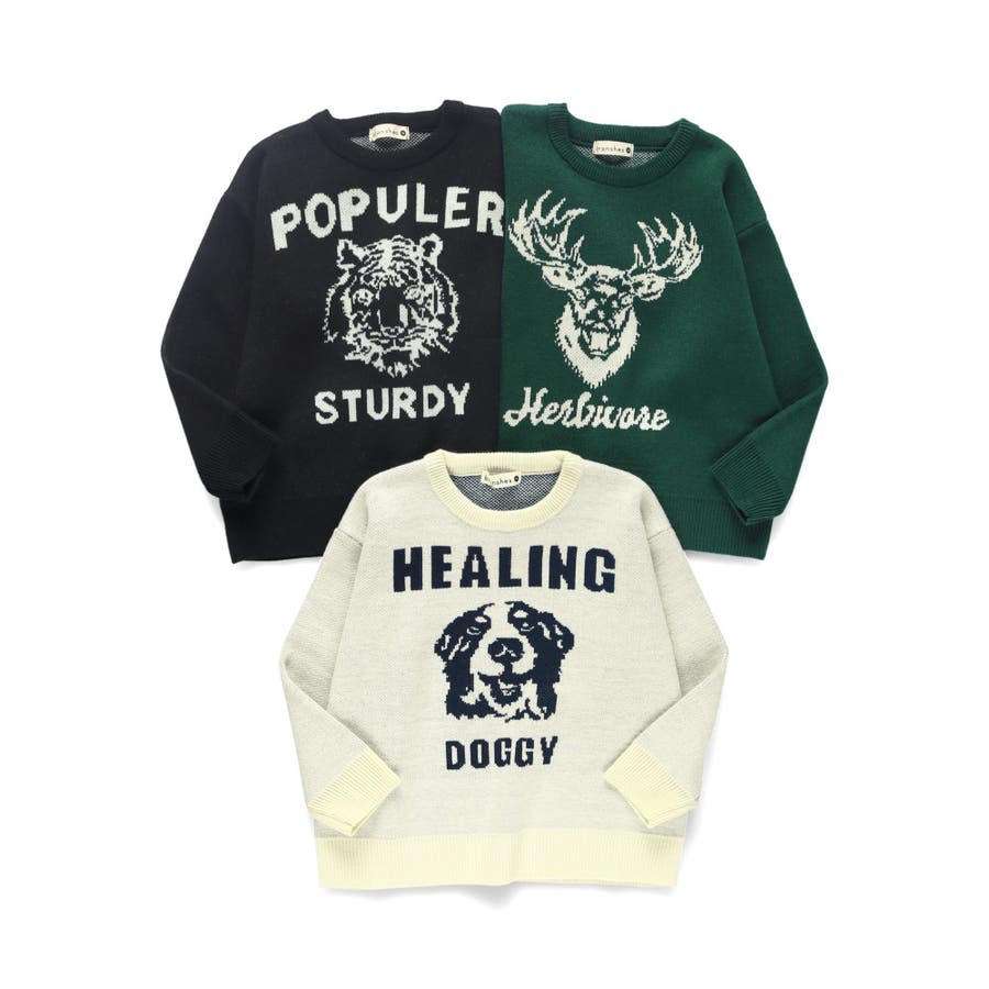ジャガード編みのアニマルたちが印象的なニットトップスです。