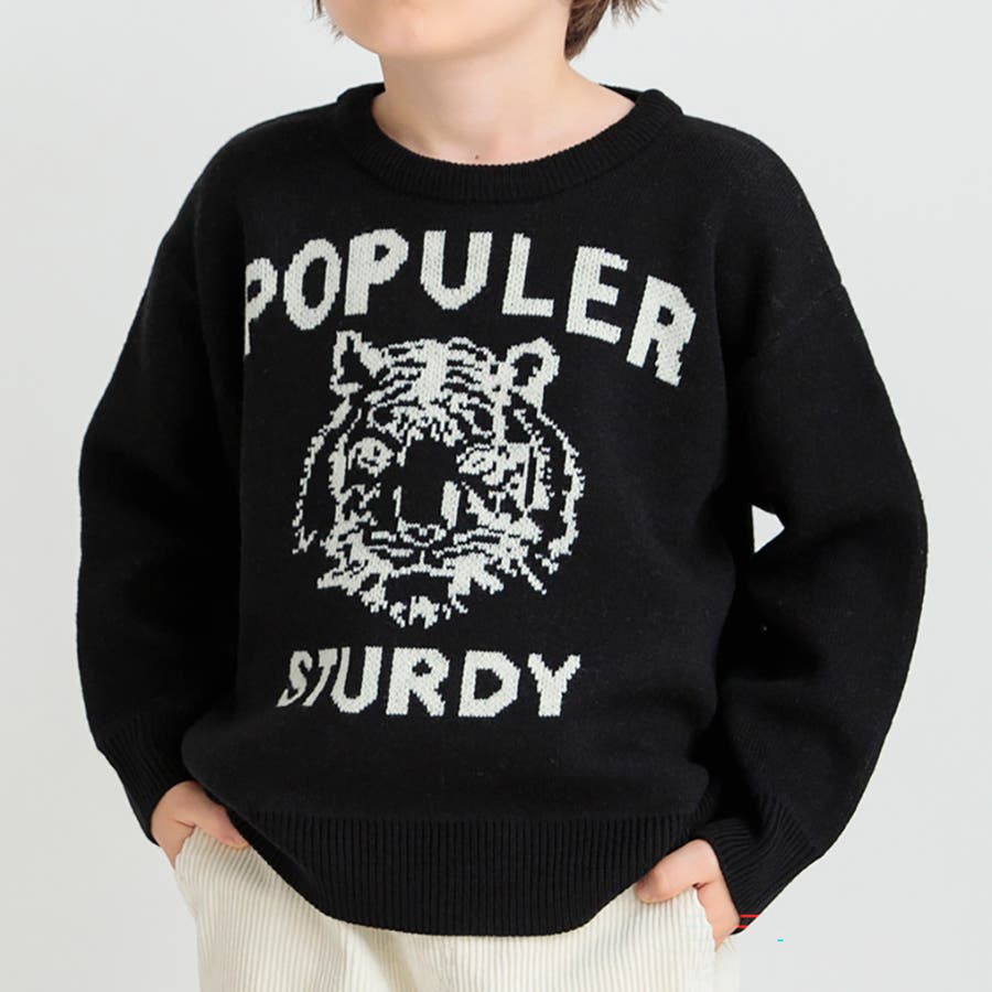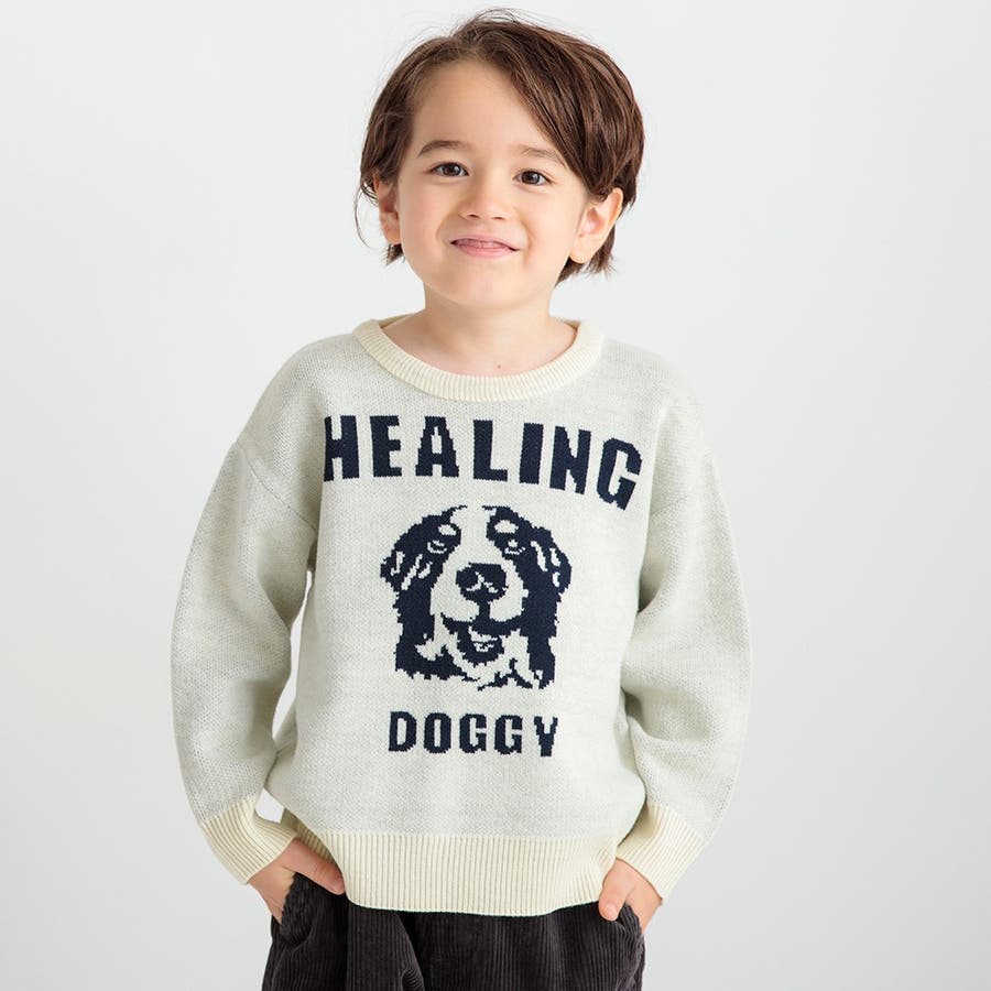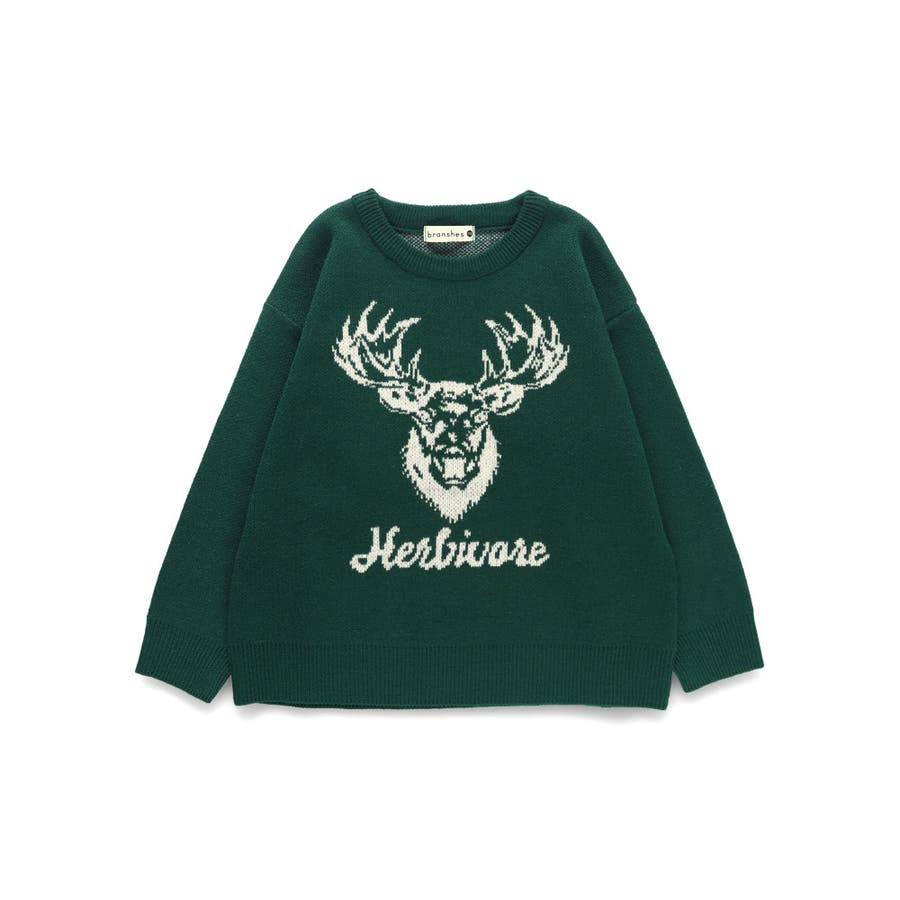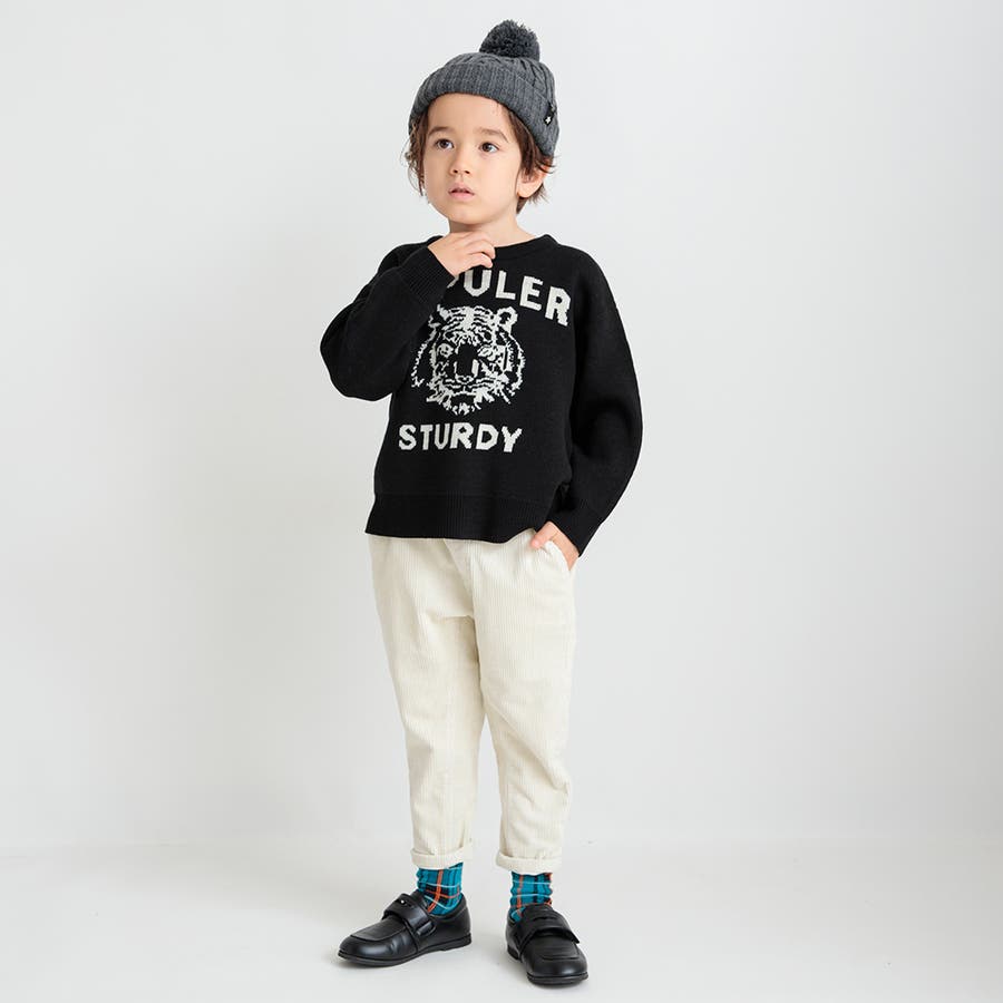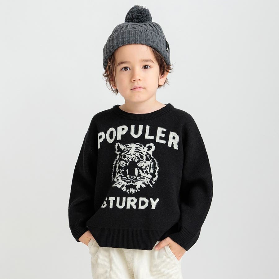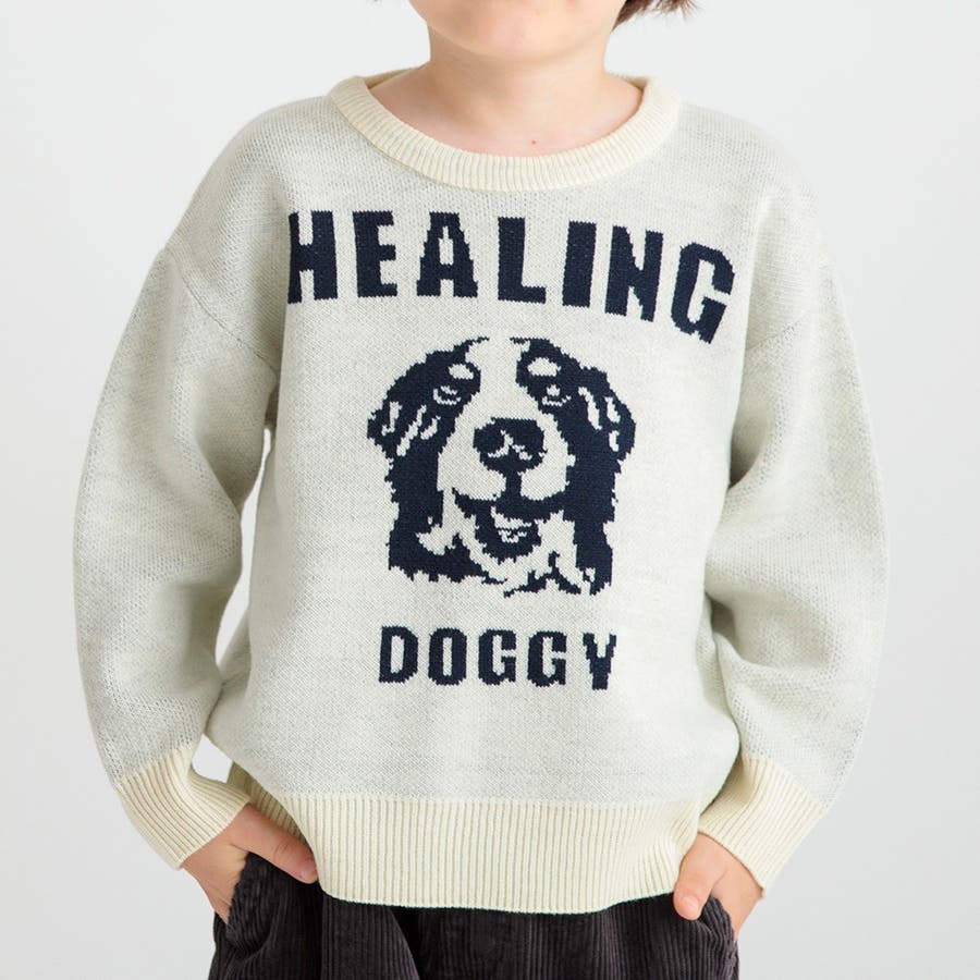 ジャガード編みのアニマルたちが印象的なニットトップスです。