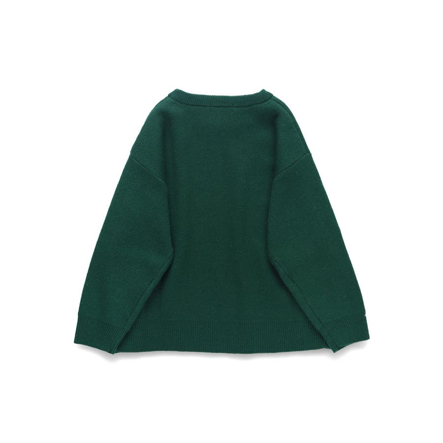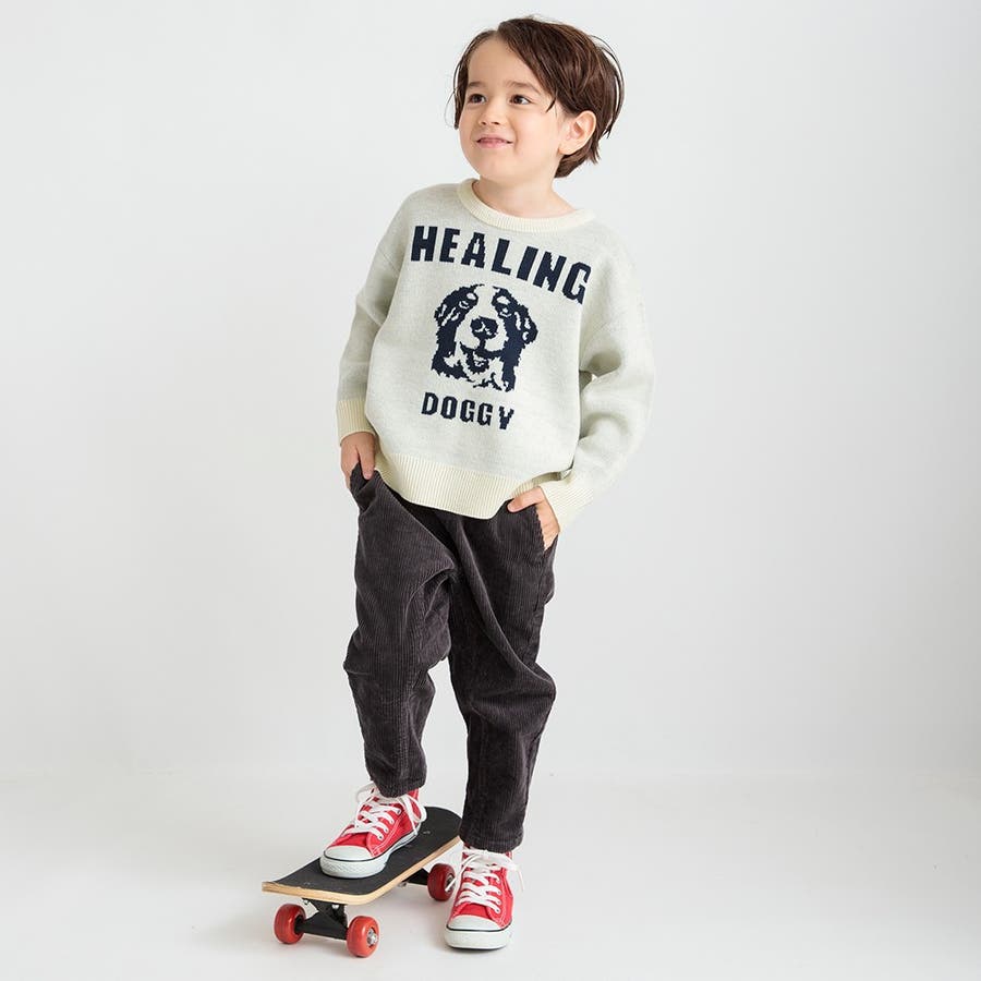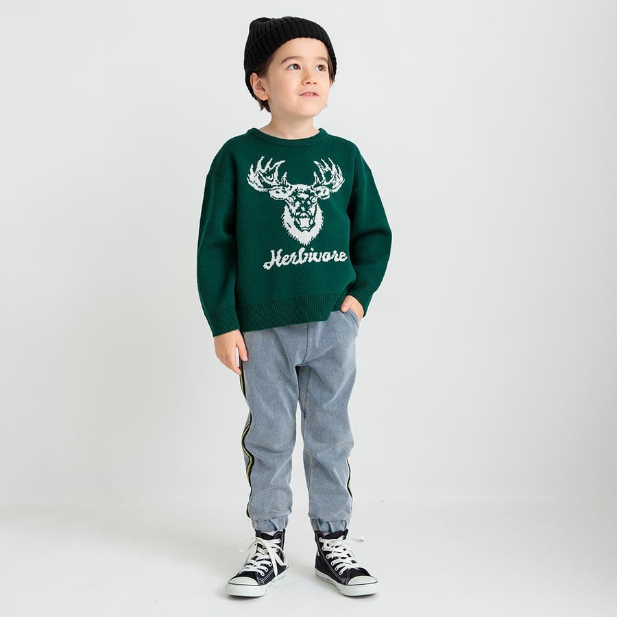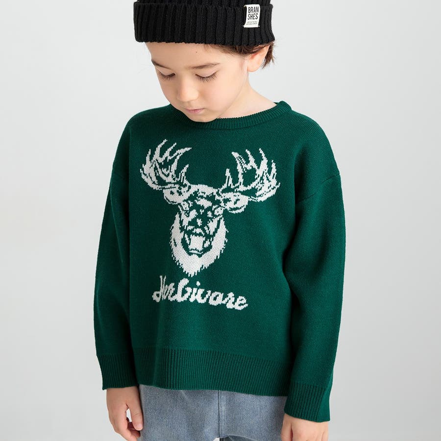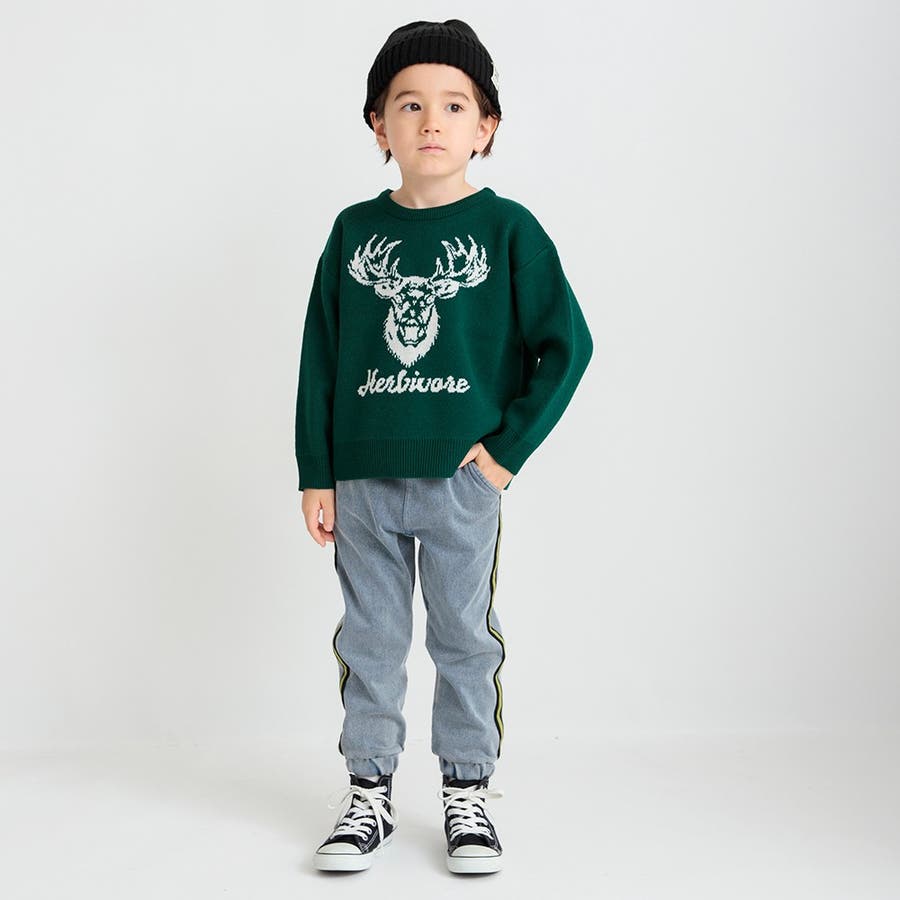 ジャガード編みのアニマルたちが印象的なニットトップスです。