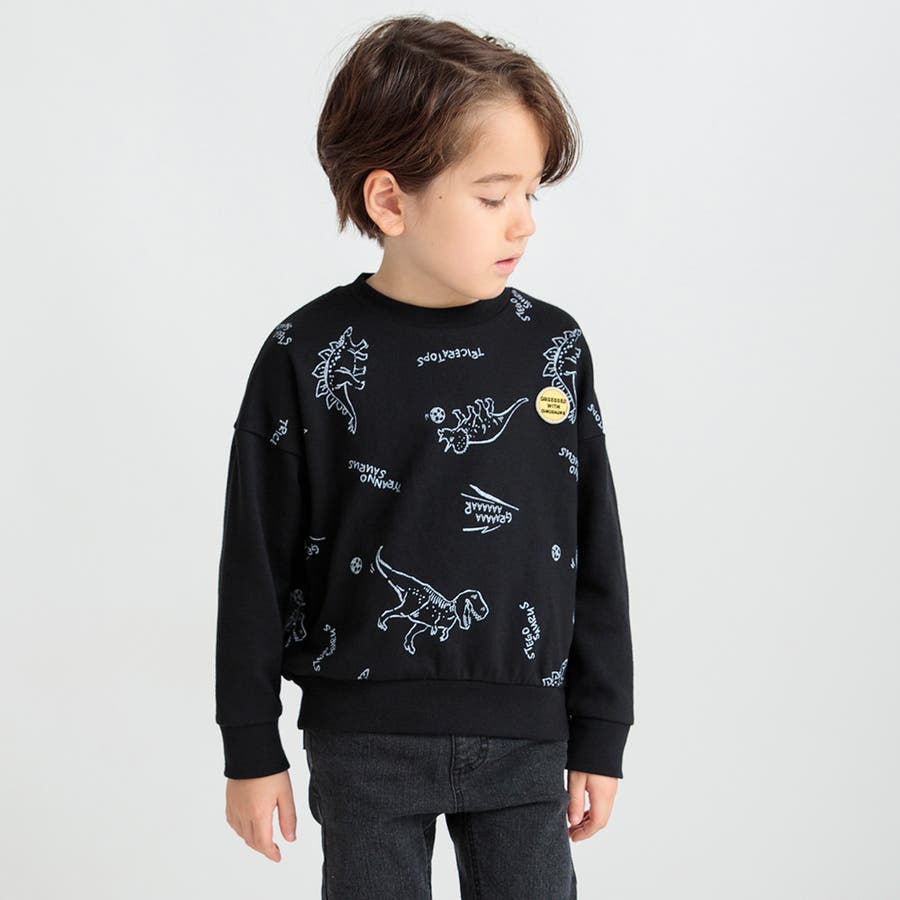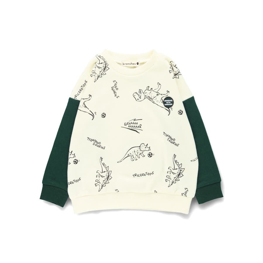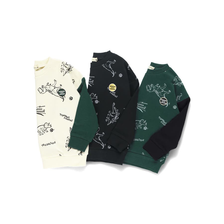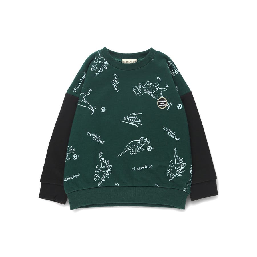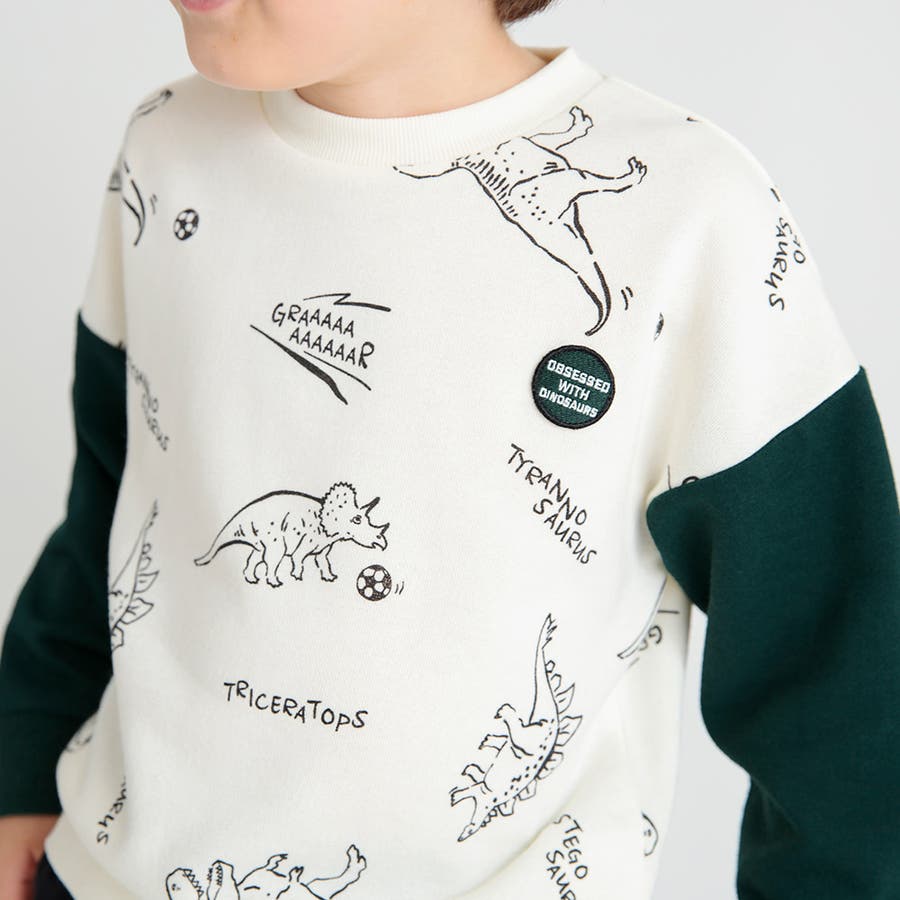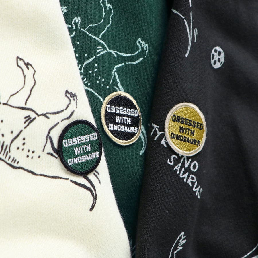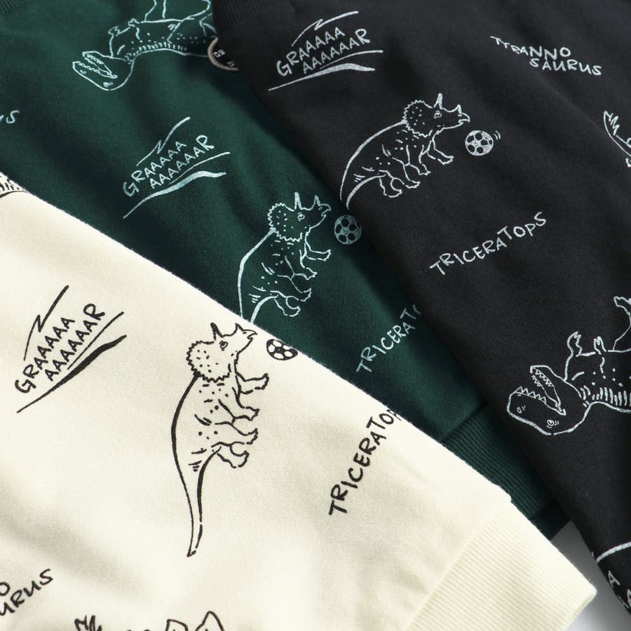 手描きの恐竜とロゴのが目を惹くトレーナーです。