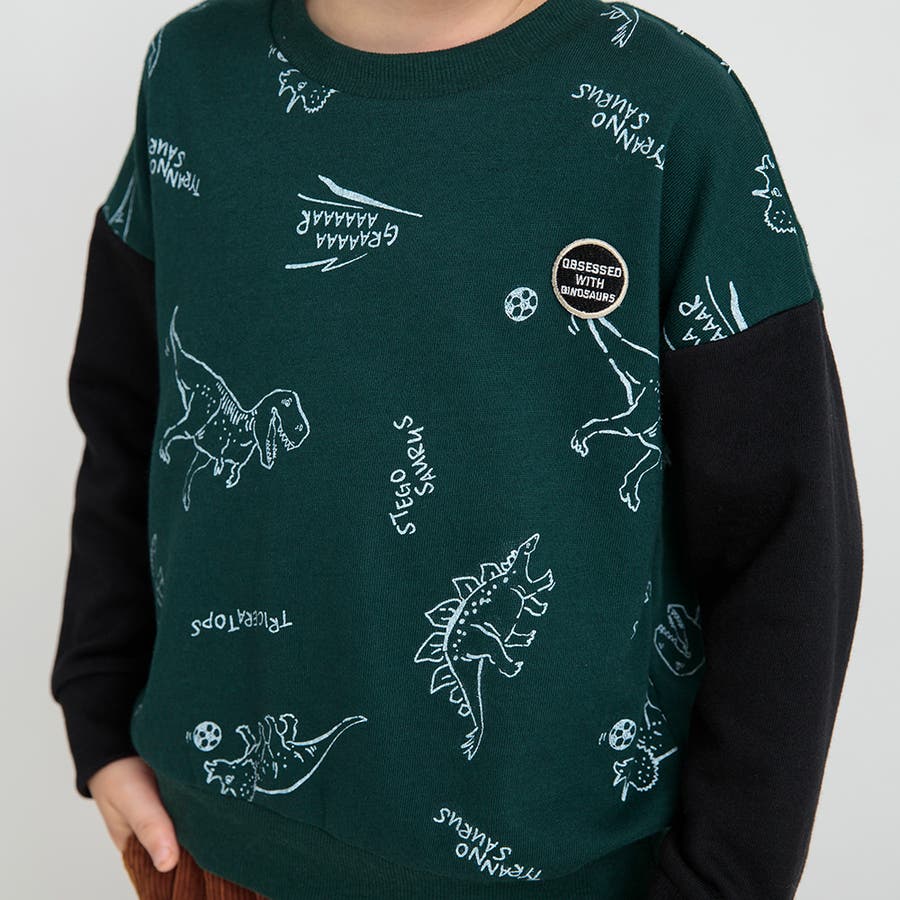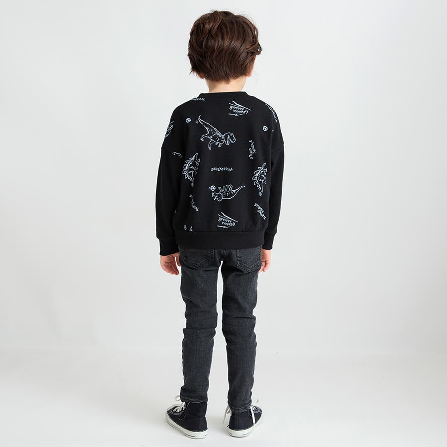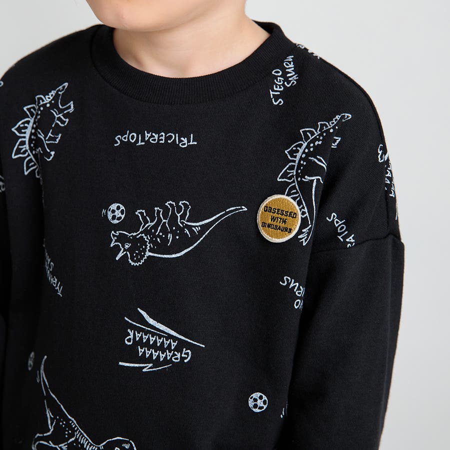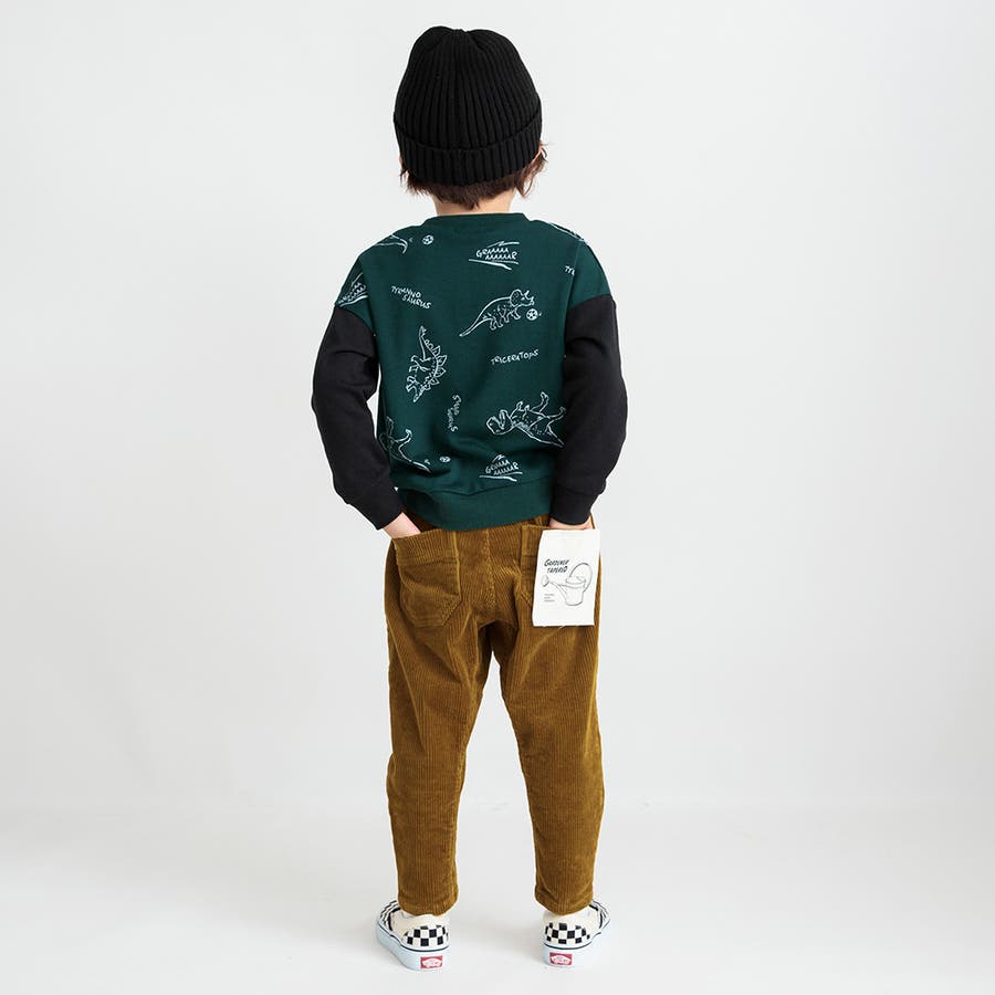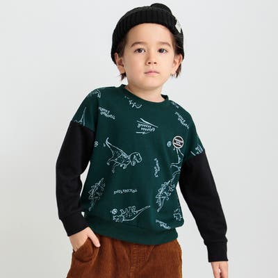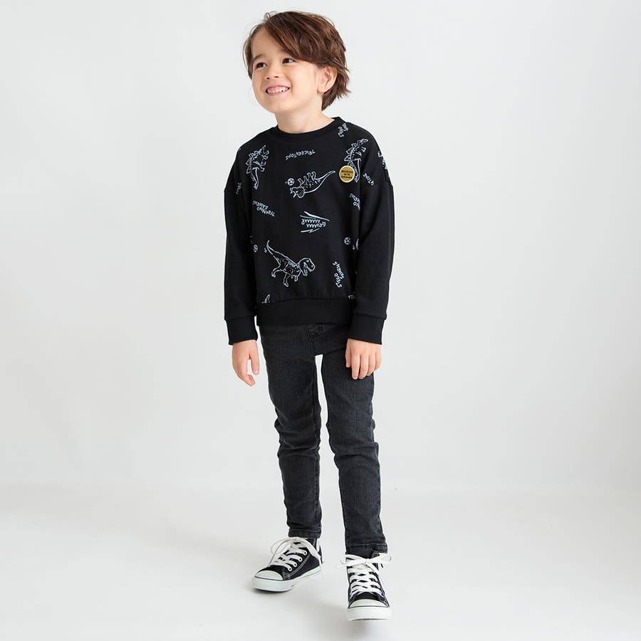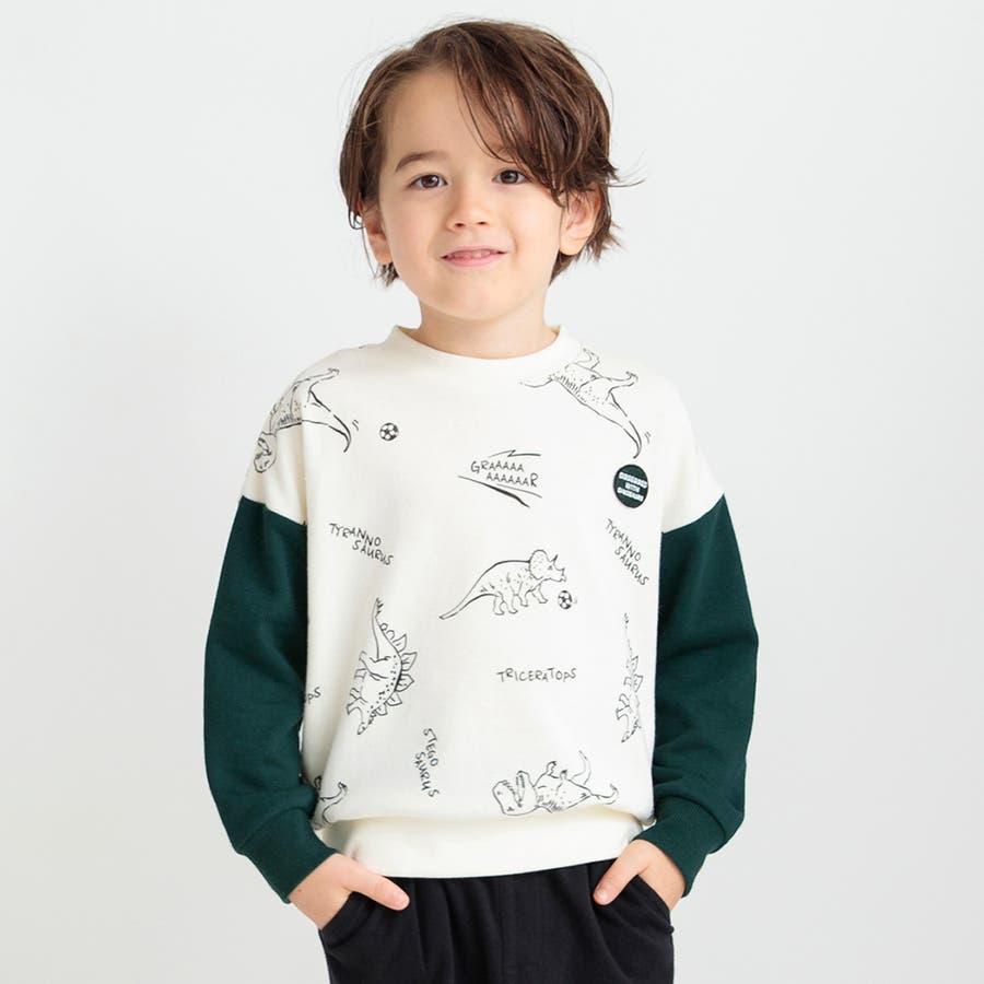 手描きの恐竜とロゴのが目を惹くトレーナーです。