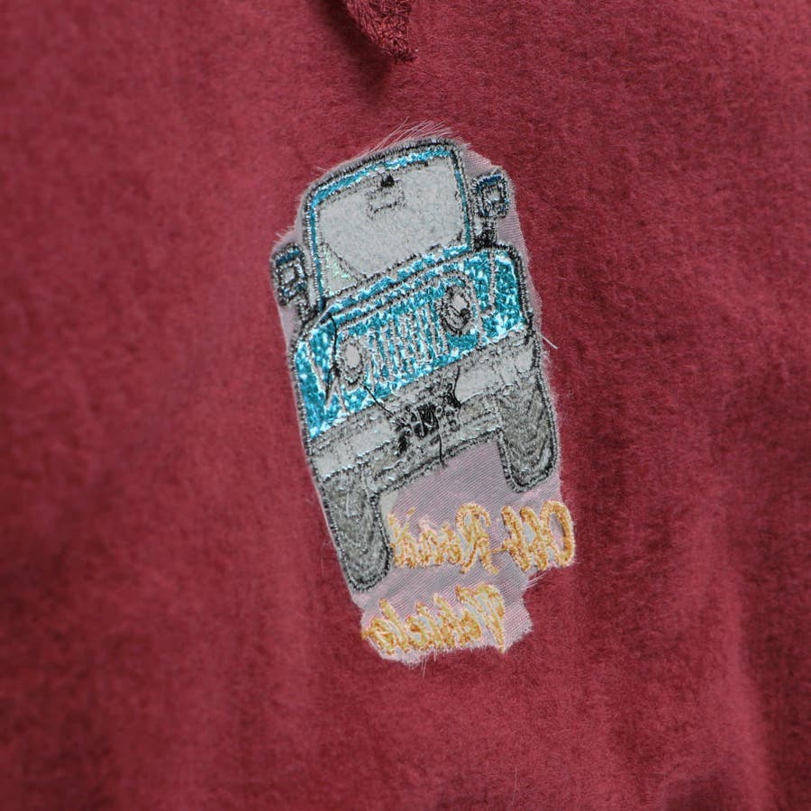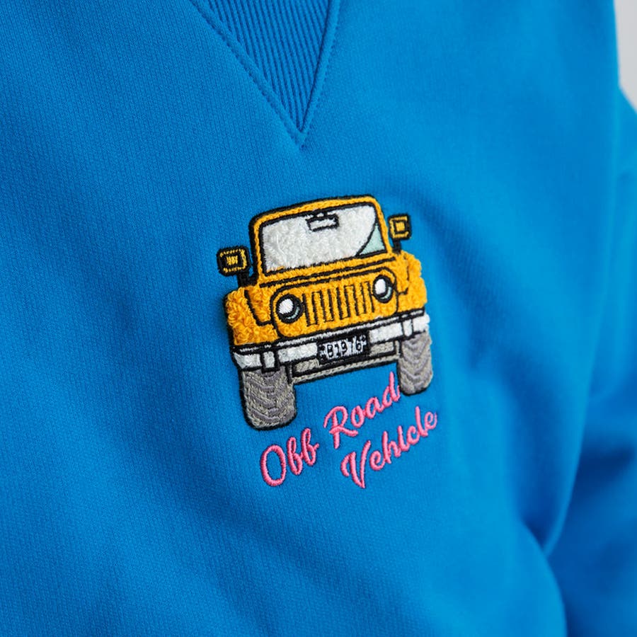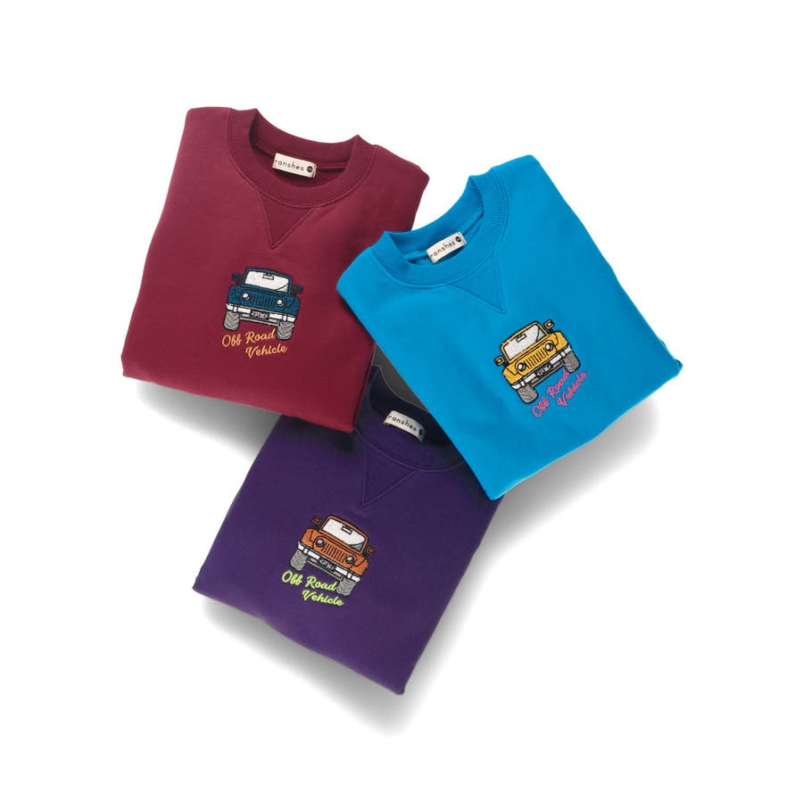 サガラ刺しゅうの車モチーフがポイントのトレーナーです。