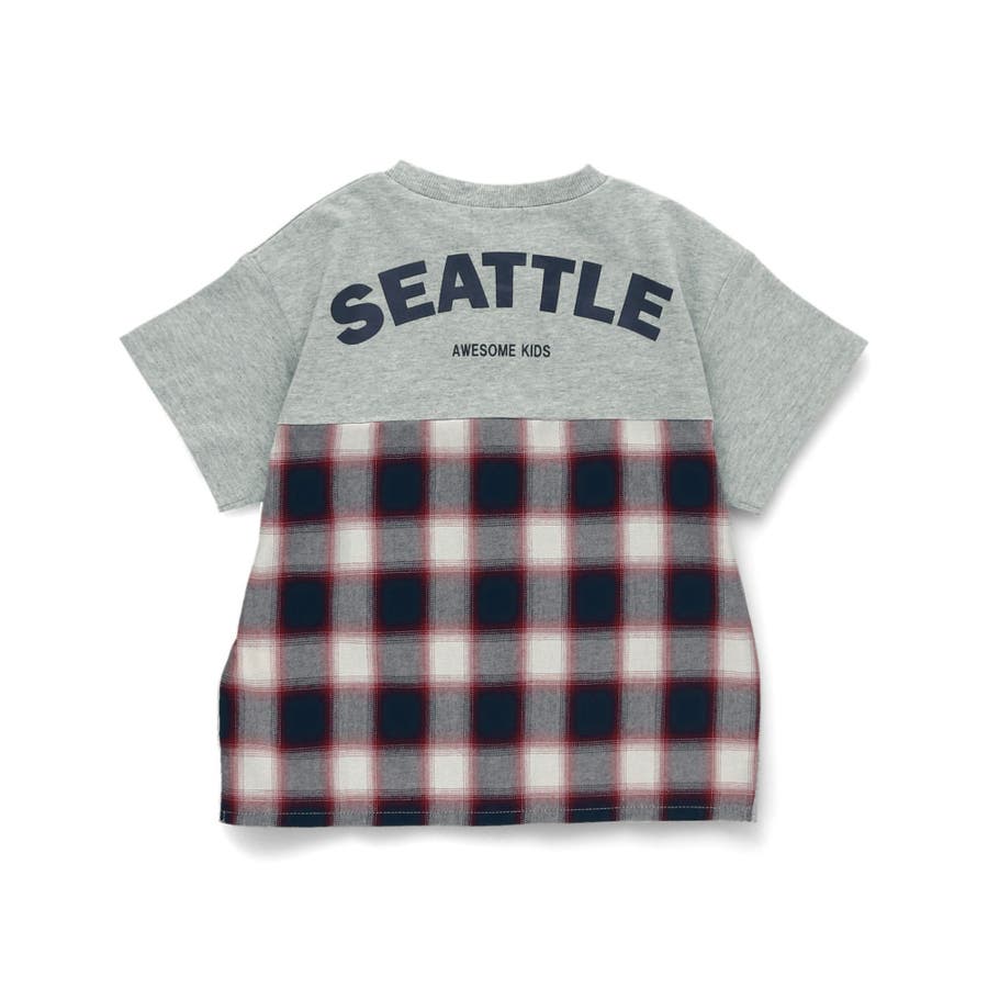 異素材切り替え半袖Tシャツ/チェック/ストライプ/バイカラー/男の子
