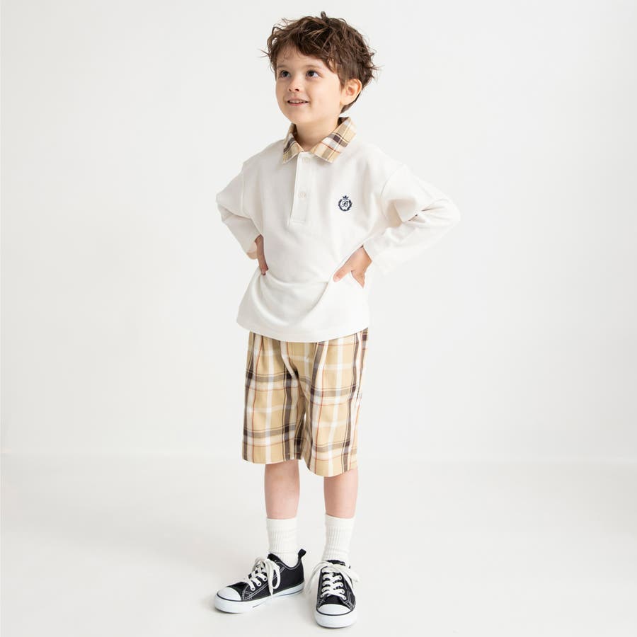 キッズ男児:11-5305-359 【おそろい】チェック襟付き長袖Tシャツ