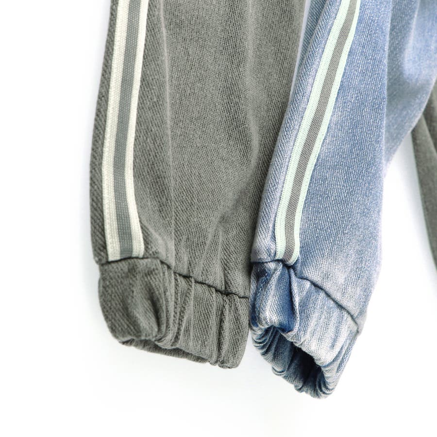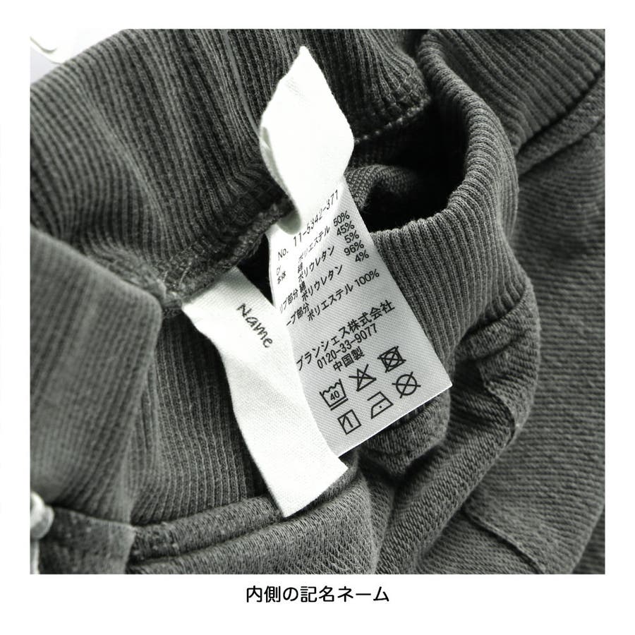 素材 | 【ブルー】本体:綿52% ポリエステル40% ポリウレタン8% リブ部分:綿96% ポリウレタン4% テープ部分:ポリエステル100% 【グレー】本体:ポリエステル50% 綿45% ポリウレタン5% リブ部分:綿96% ポリウレタン4% テープ部分:ポリエステル100% |
