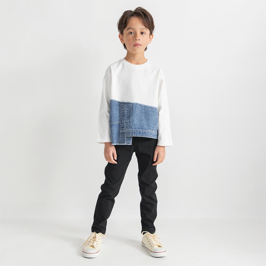 【デニム×コットン】異素材レイヤード長袖Tシャツ キッズ 男の子