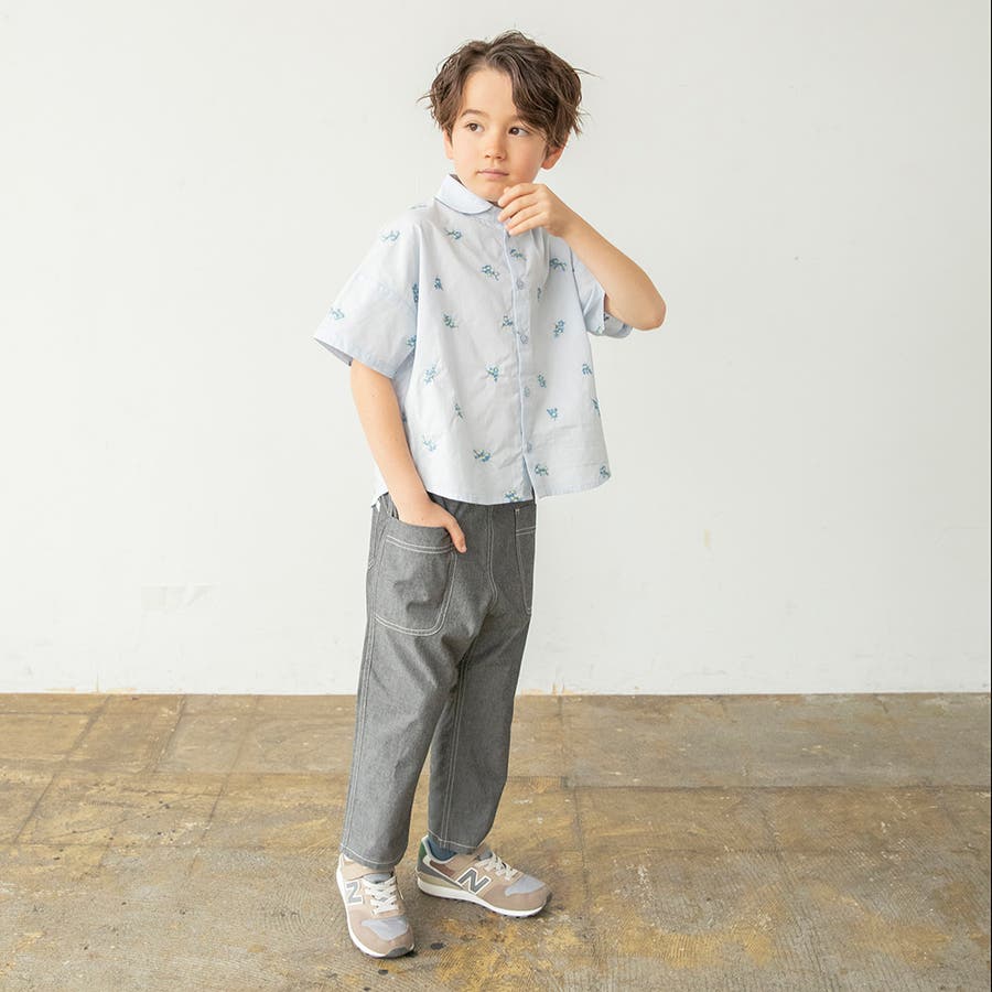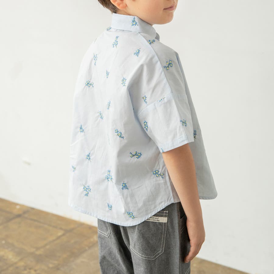 【おそろい】花刺しゅう半袖シャツ/キッズ/男の子/女の子/ブラウス/150cm