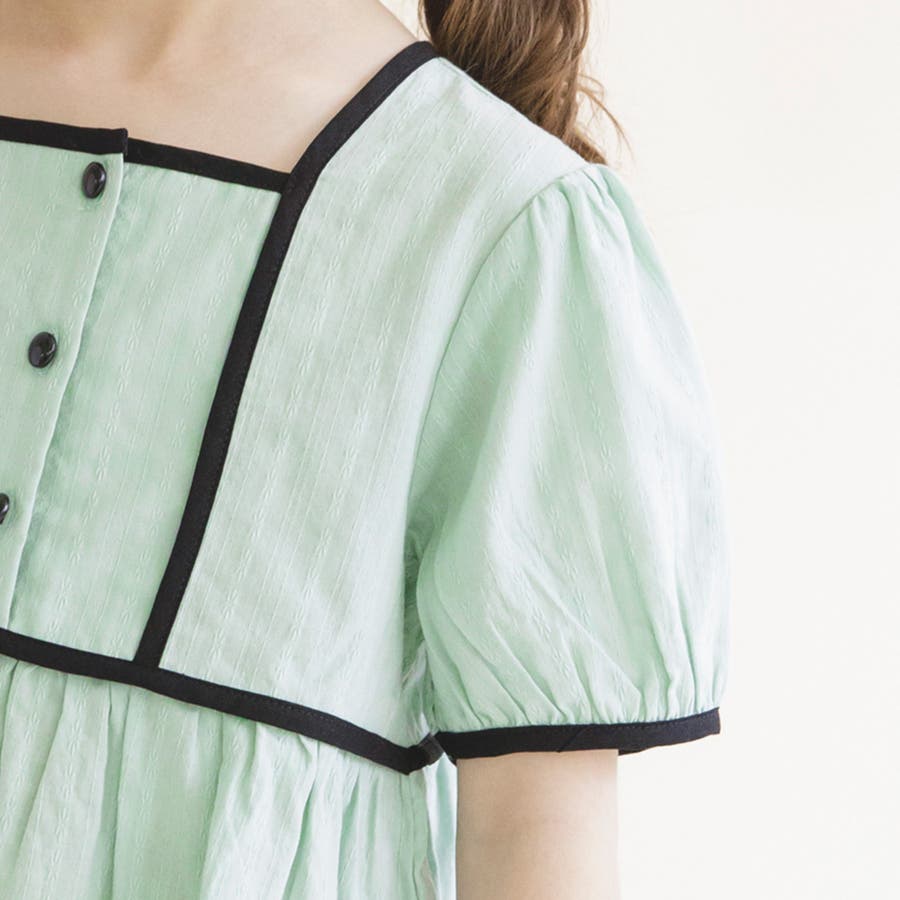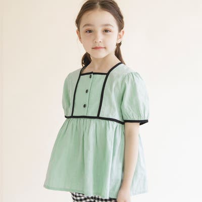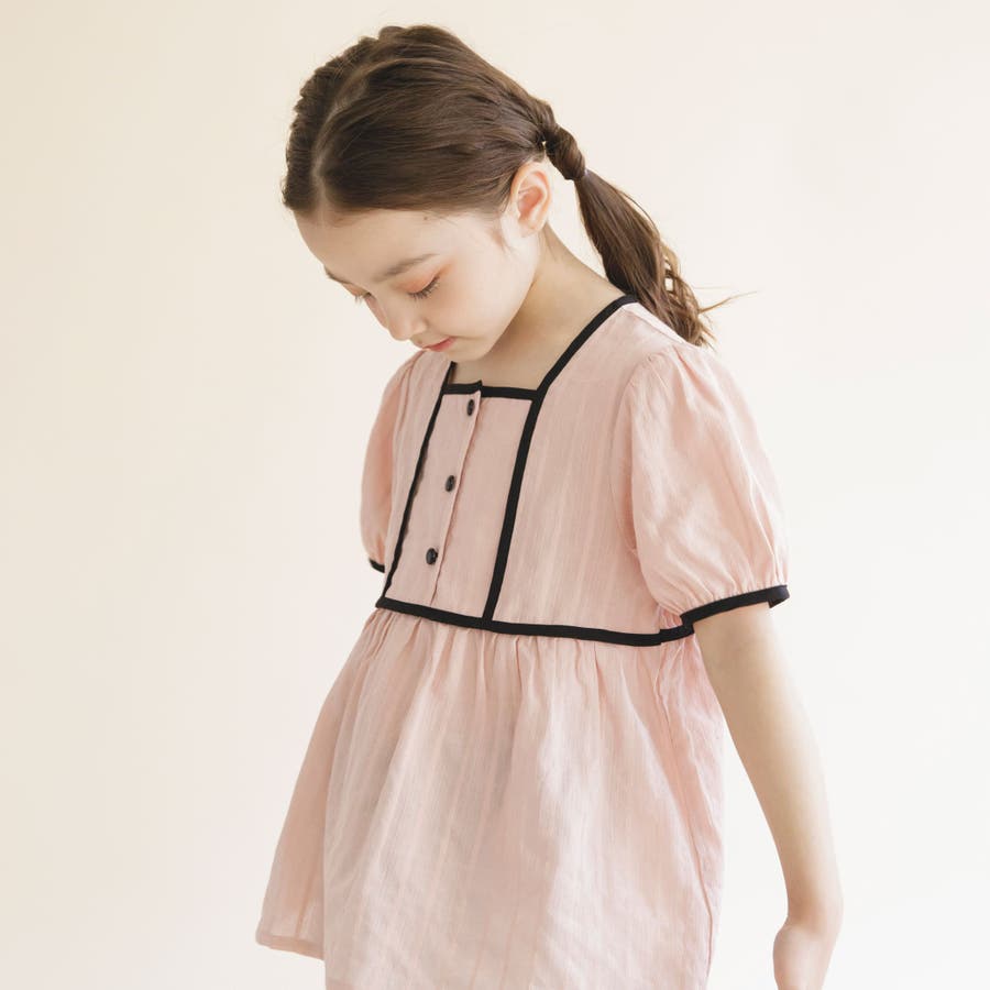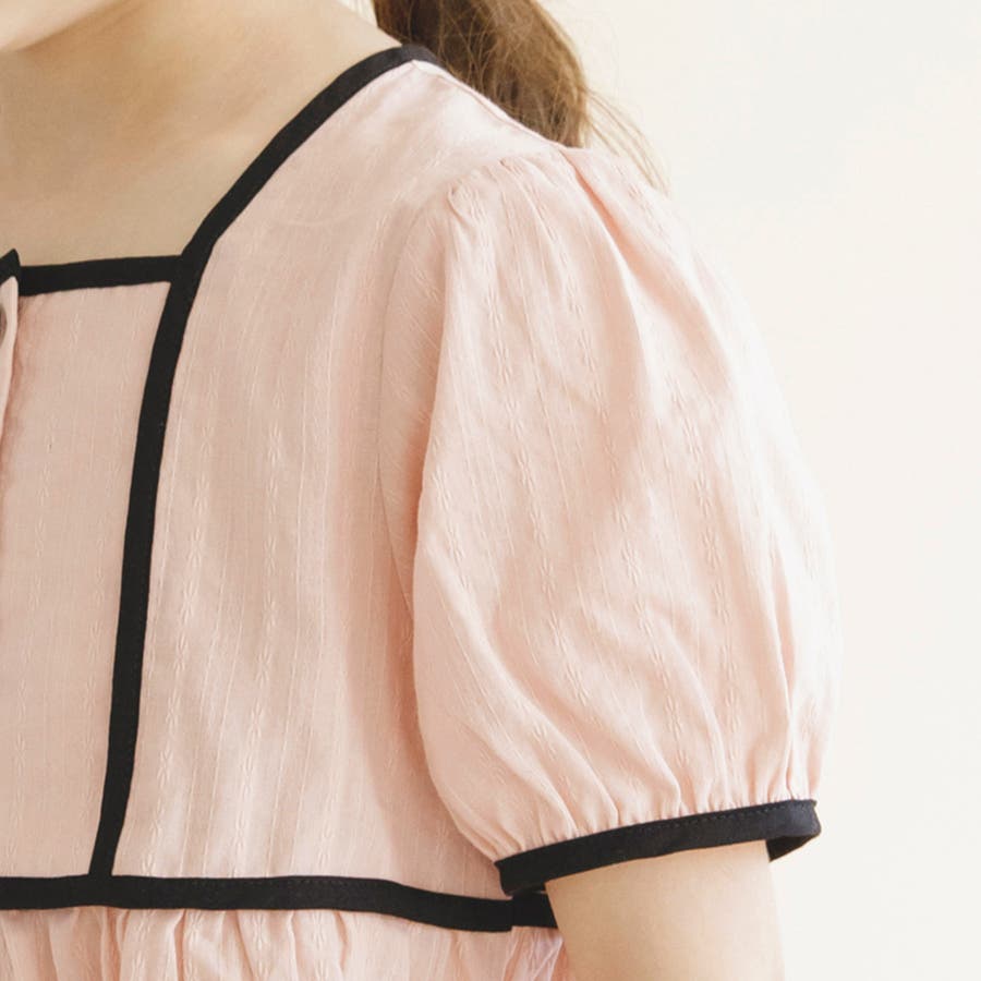 【プチレディ】配色パイピング半袖ブラウス 子供服 キッズ