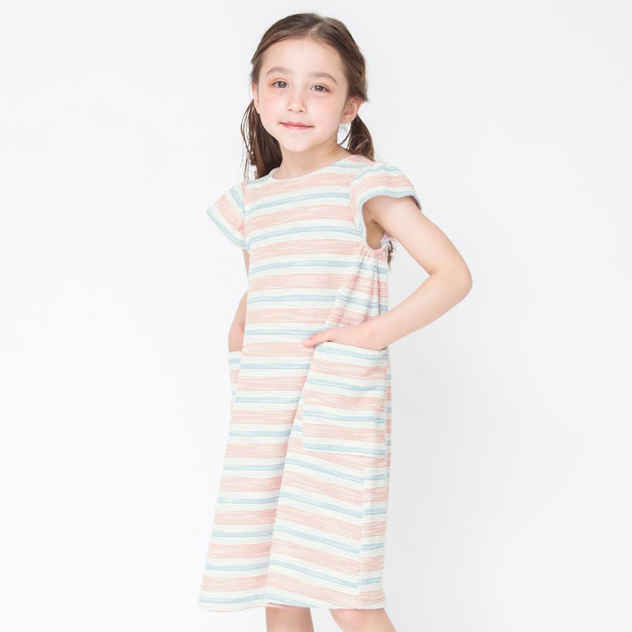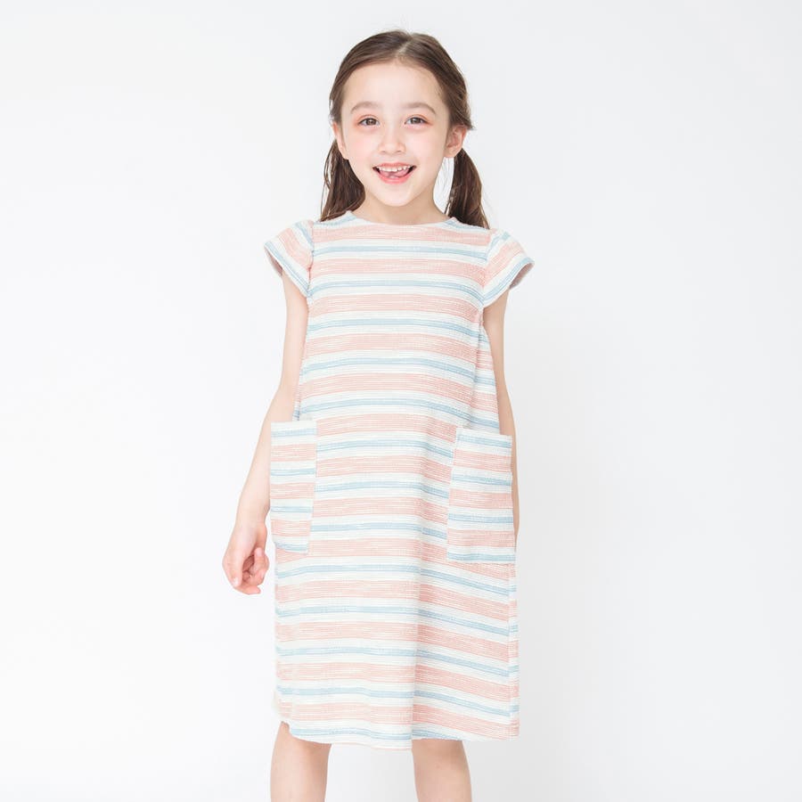 【ペア/お揃い】マルチボーダーツイード半袖ワンピース 子供服 キッズ