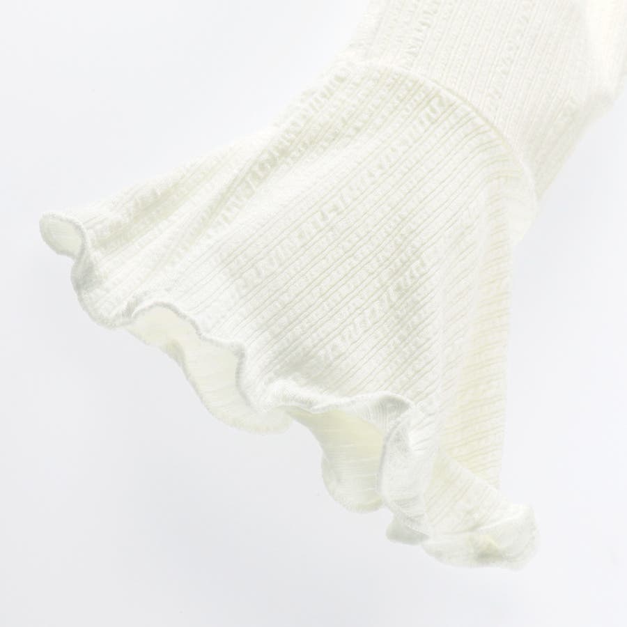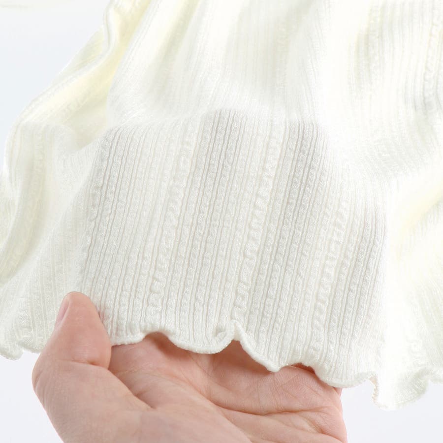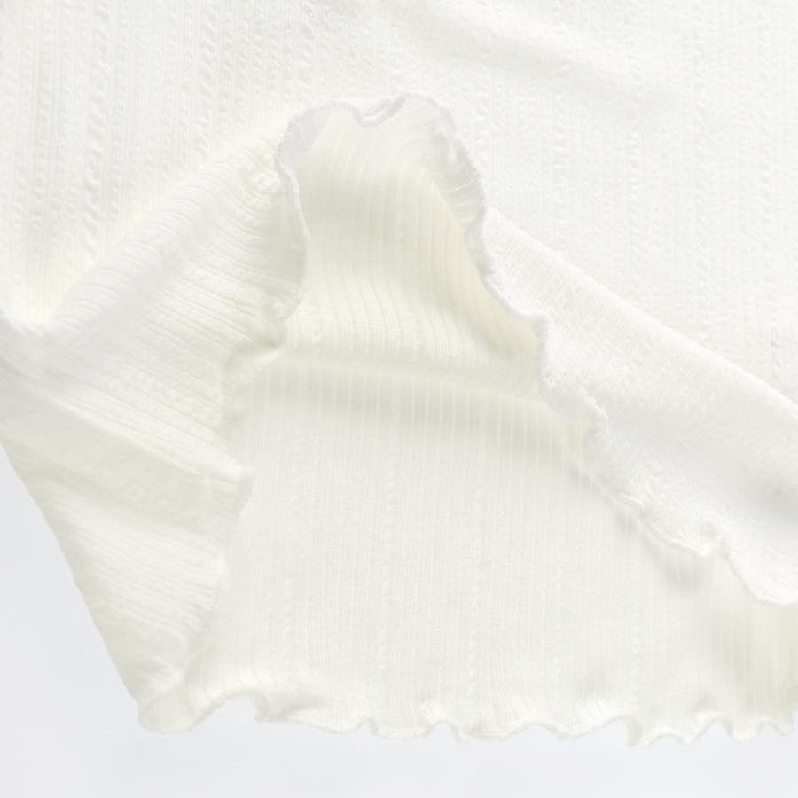 裾に短めのフリルをあしらい、可愛らしさをプラス。