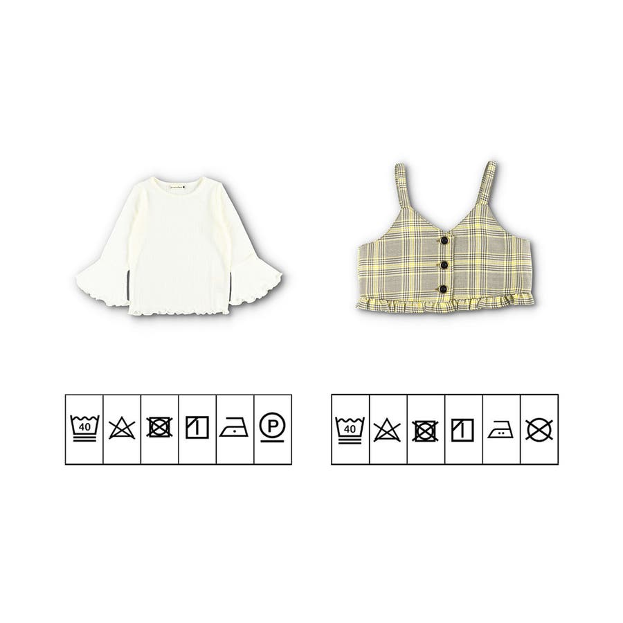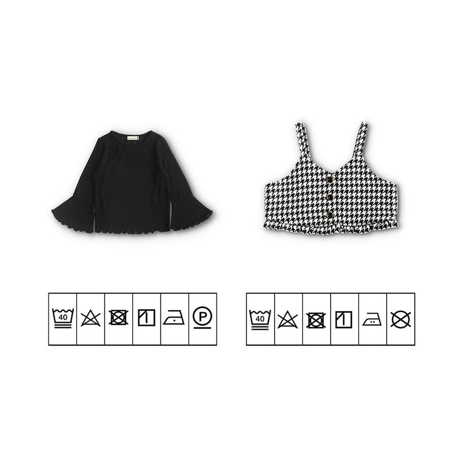 100cm:【Tシャツ】着丈33 胸回り54 背肩幅21.5 袖丈28.5 袖口回り16.5 【ビスチェ】総丈24 着丈9.5 胸回り60 肩ひも長さ23