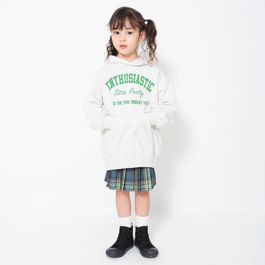 スウェットパーカーやカレッジロゴのトップスと