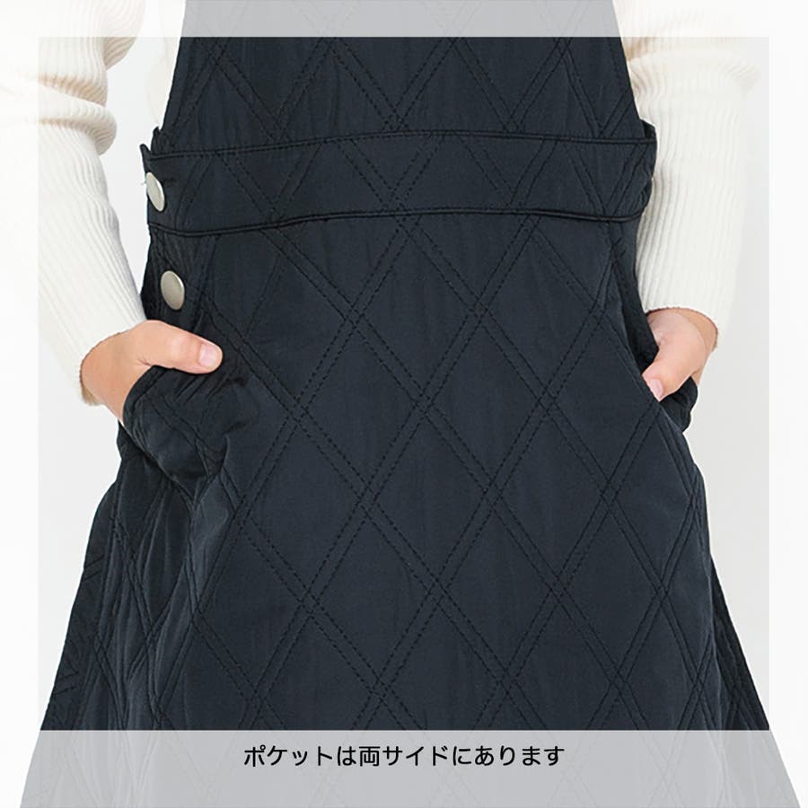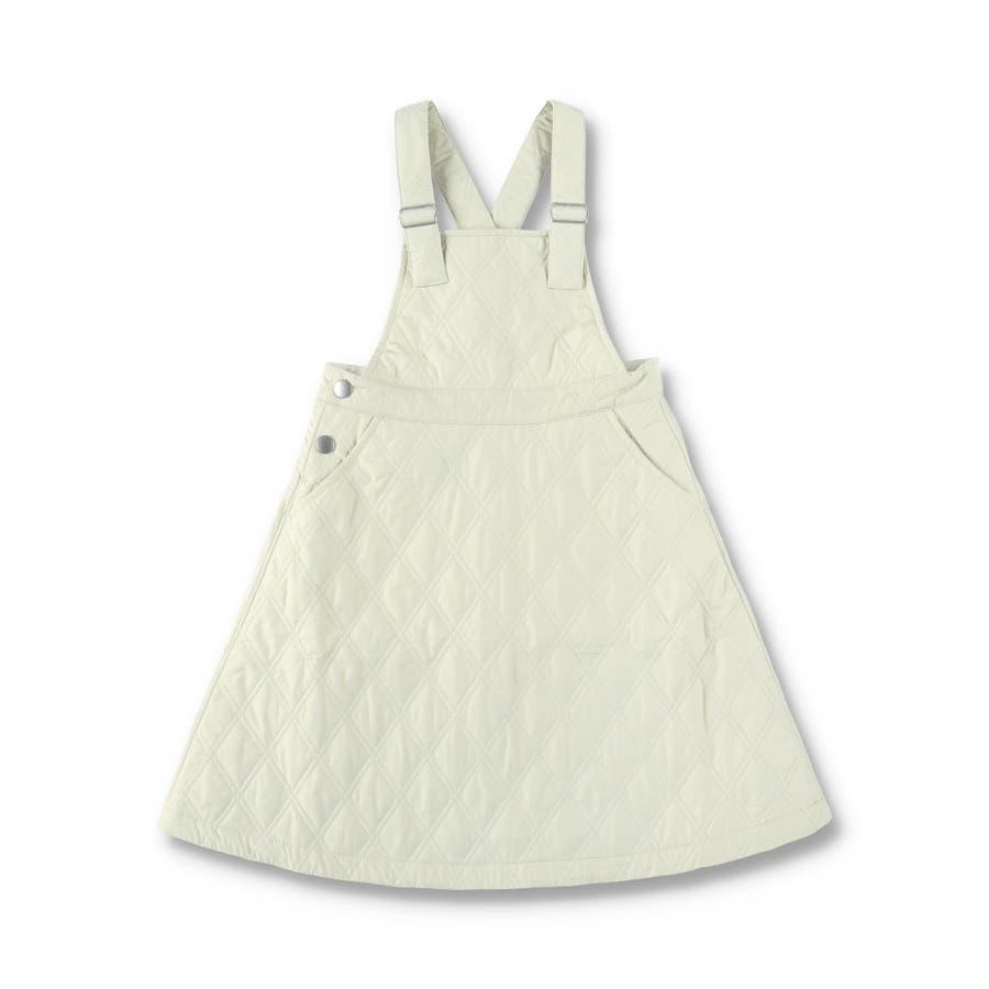 キルティングの柄もかわいいし、膝下丈の丈感が絶妙に仕上がったジャンパースカートです。