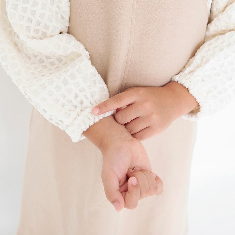| 素材 | 本体:綿80% ポリエステル20% 袖(基布):ポリエステル98% ポリウレタン2% 袖(装飾糸・とめ糸):ポリエステル100% リブ部分:綿95% ポリウレタン5% |
