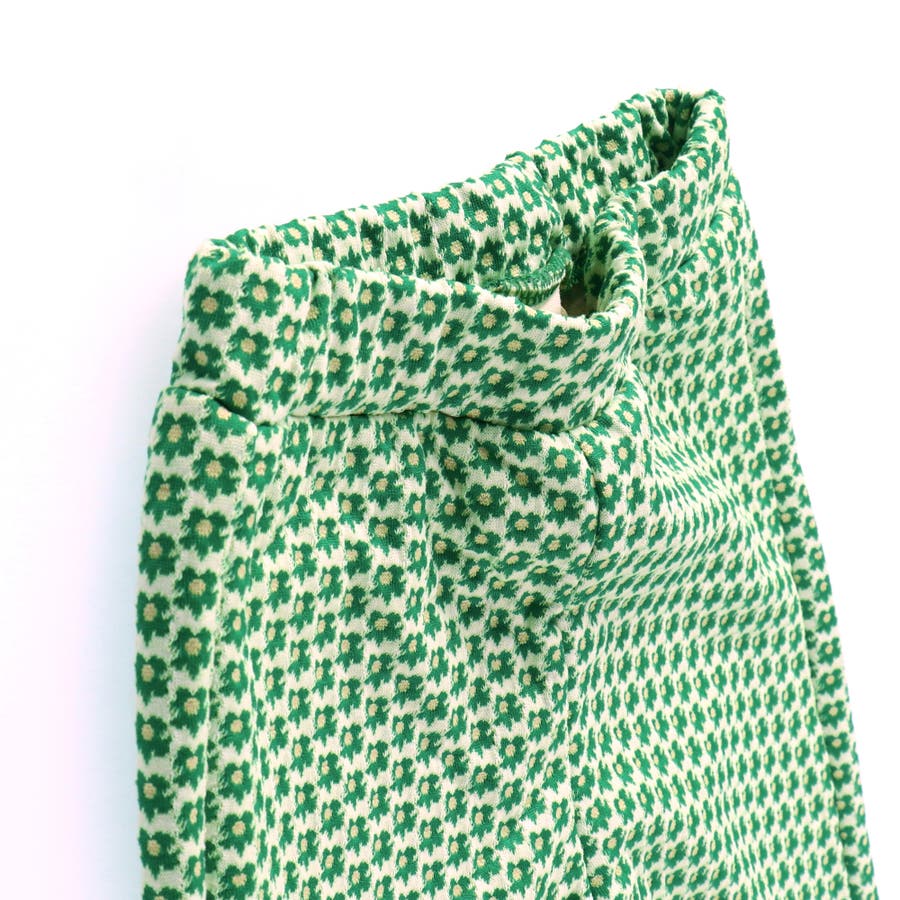 腰回りはピッタリ目のシルエットですが、膝回り~裾にかけて程よいフレア感が絶妙なロングパンツが出来上がりました♪