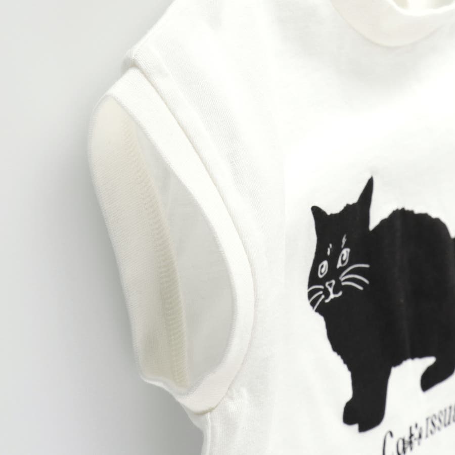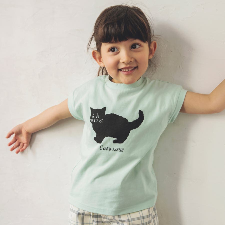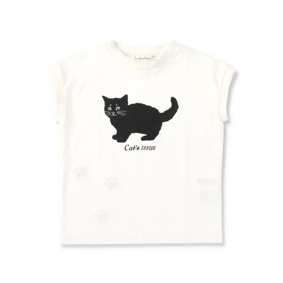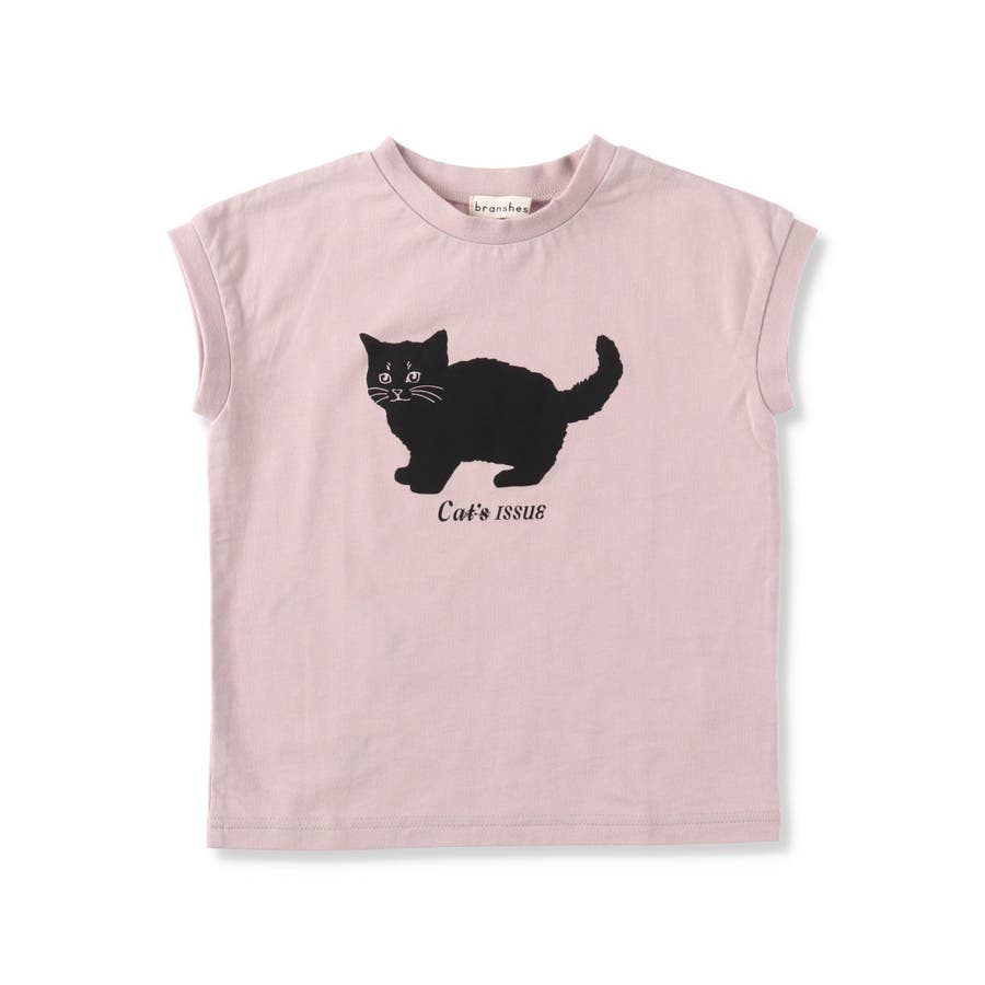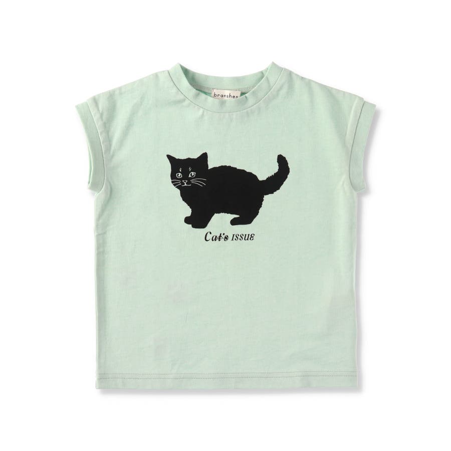 黒ネコプリントフレンチスリーブTシャツ 子供服 キッズ