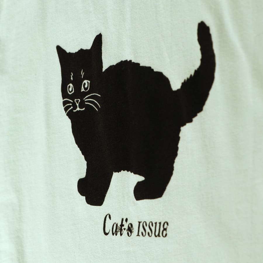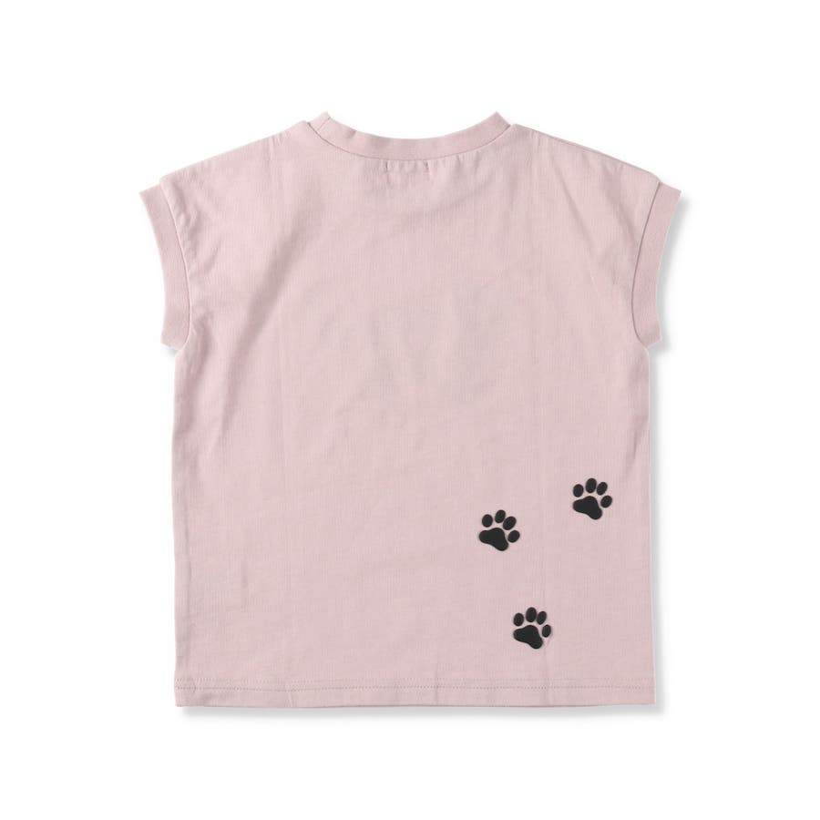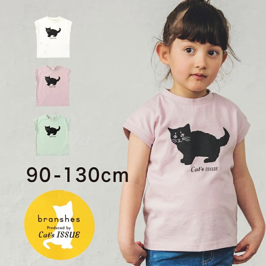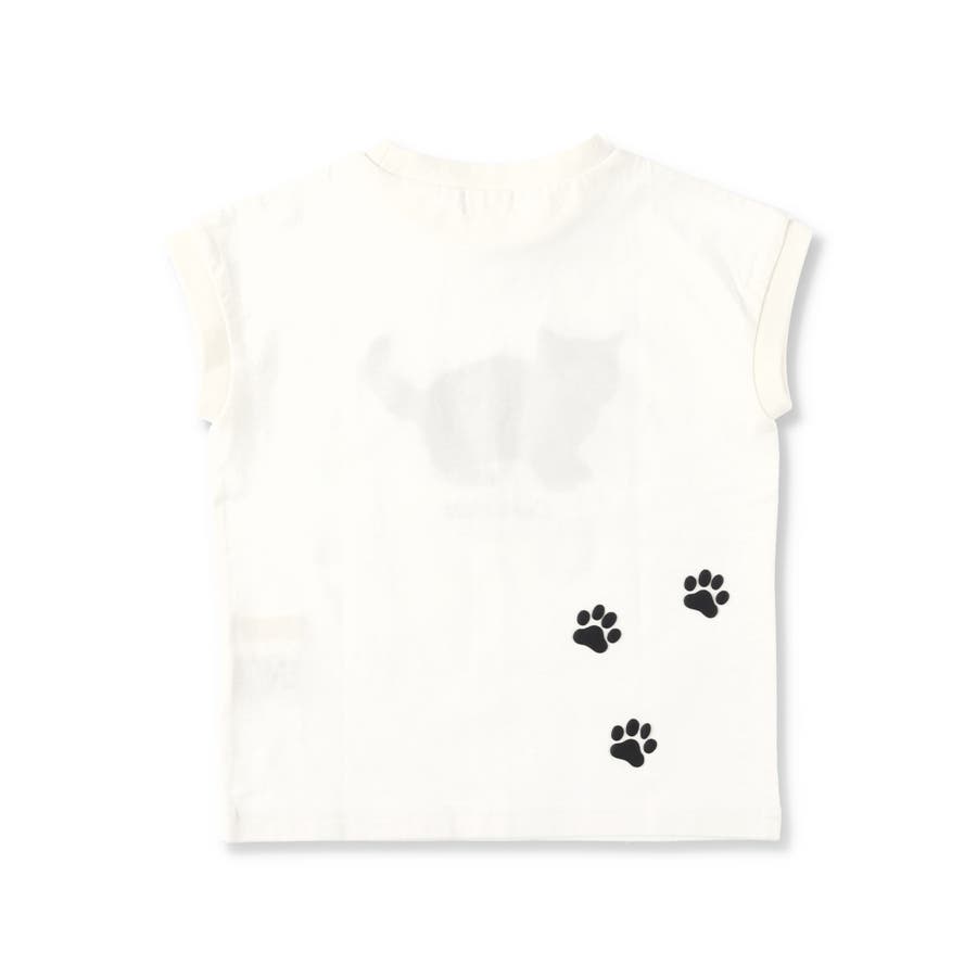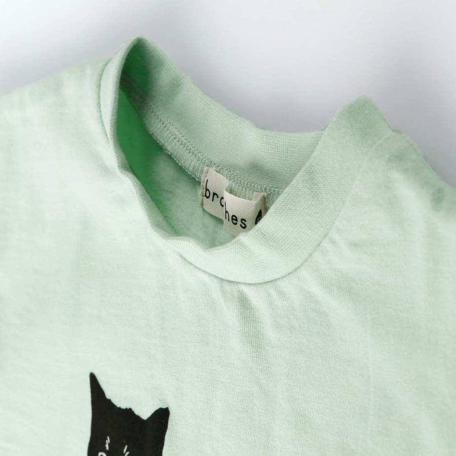 黒ネコプリントフレンチスリーブTシャツ 子供服 キッズ