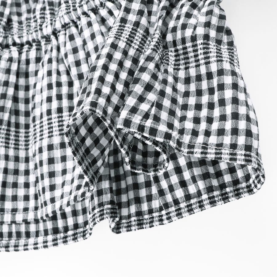 110cm:着丈38 胸回り87 背肩幅(上り)26 袖丈(ギャザー分量含む)16.5 袖口ゴム上り20 ウエストゴム上り54