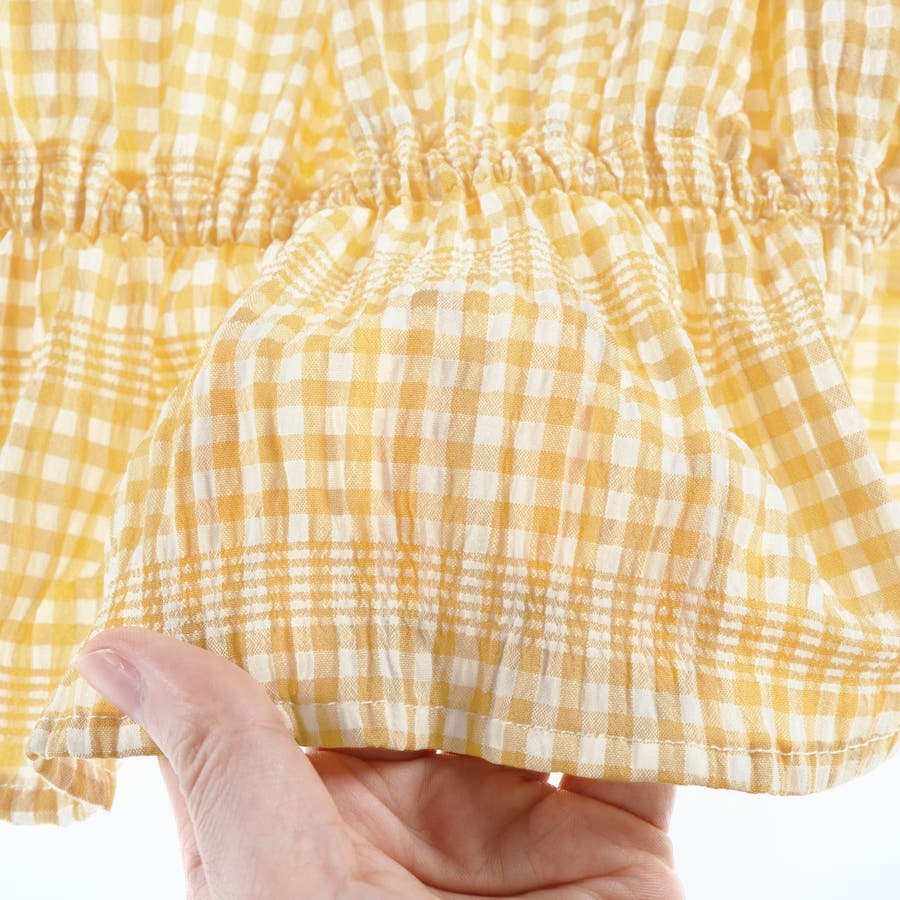 140cm:着丈49 胸回り103 背肩幅(上り)32 袖丈(ギャザー分量含む)21 袖口ゴム上り23 ウエストゴム上り65