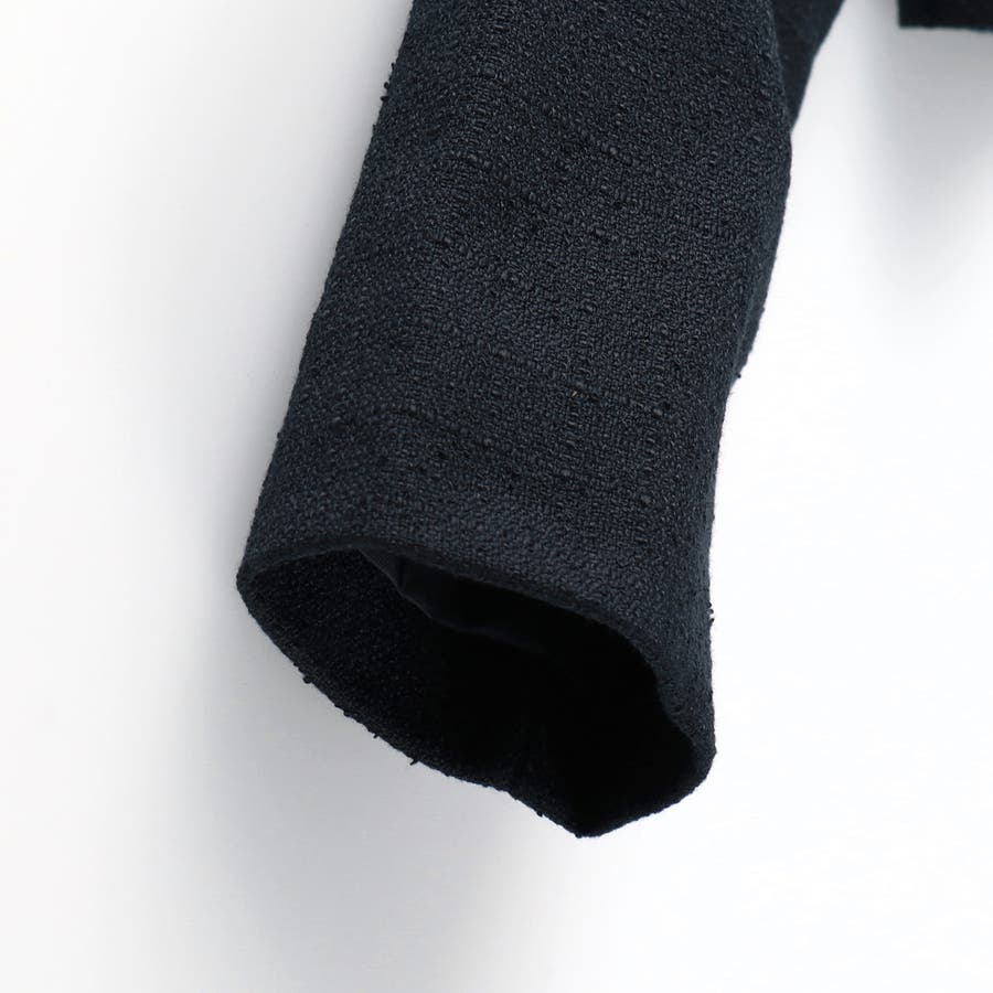 表面に凹凸感があり、少し光沢感のあるブークレ素材のジャケットです。