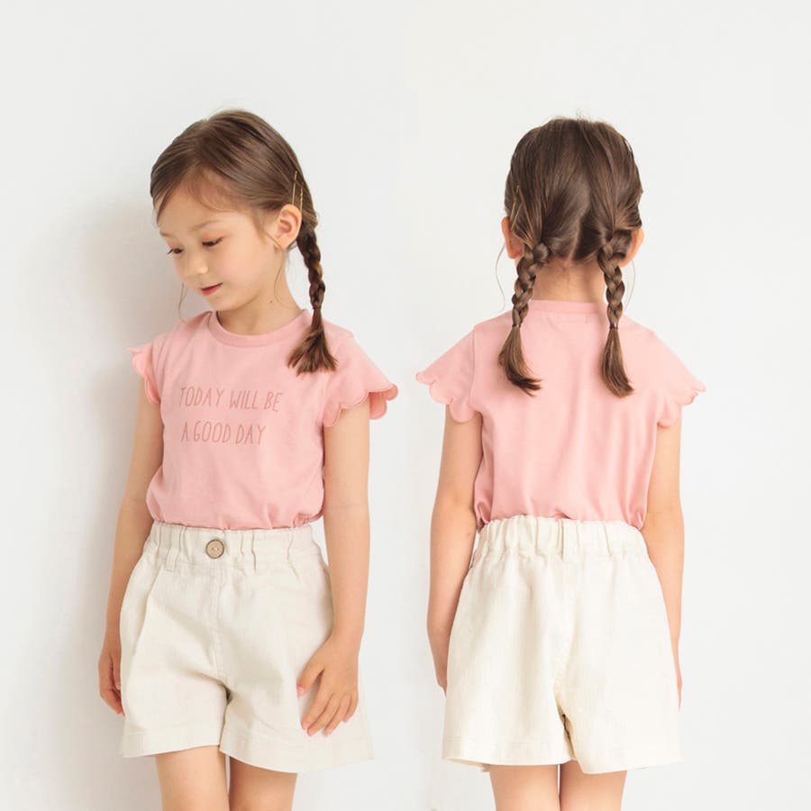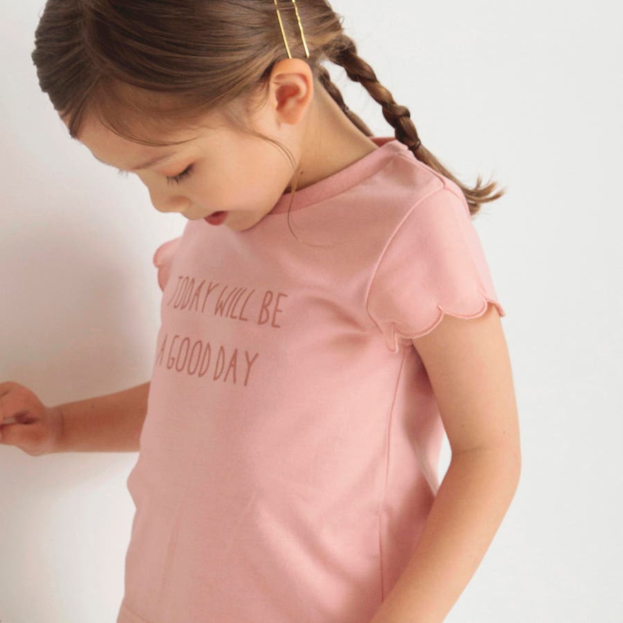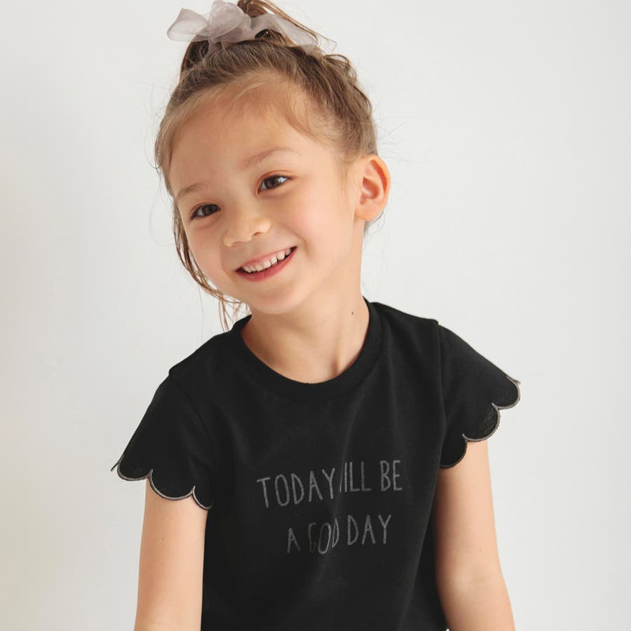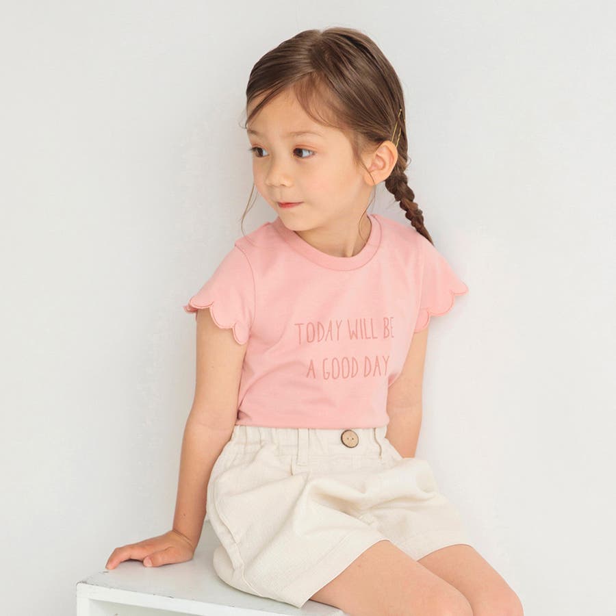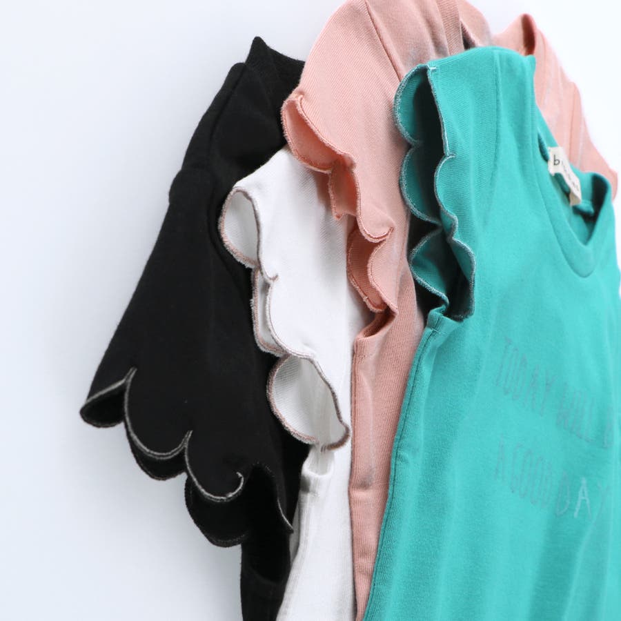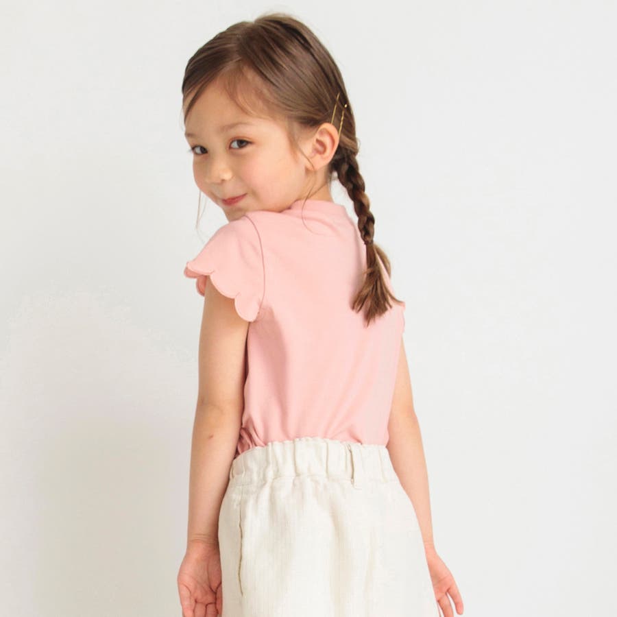 【プチプラ】【おそろい】スカラップスリーブTシャツ