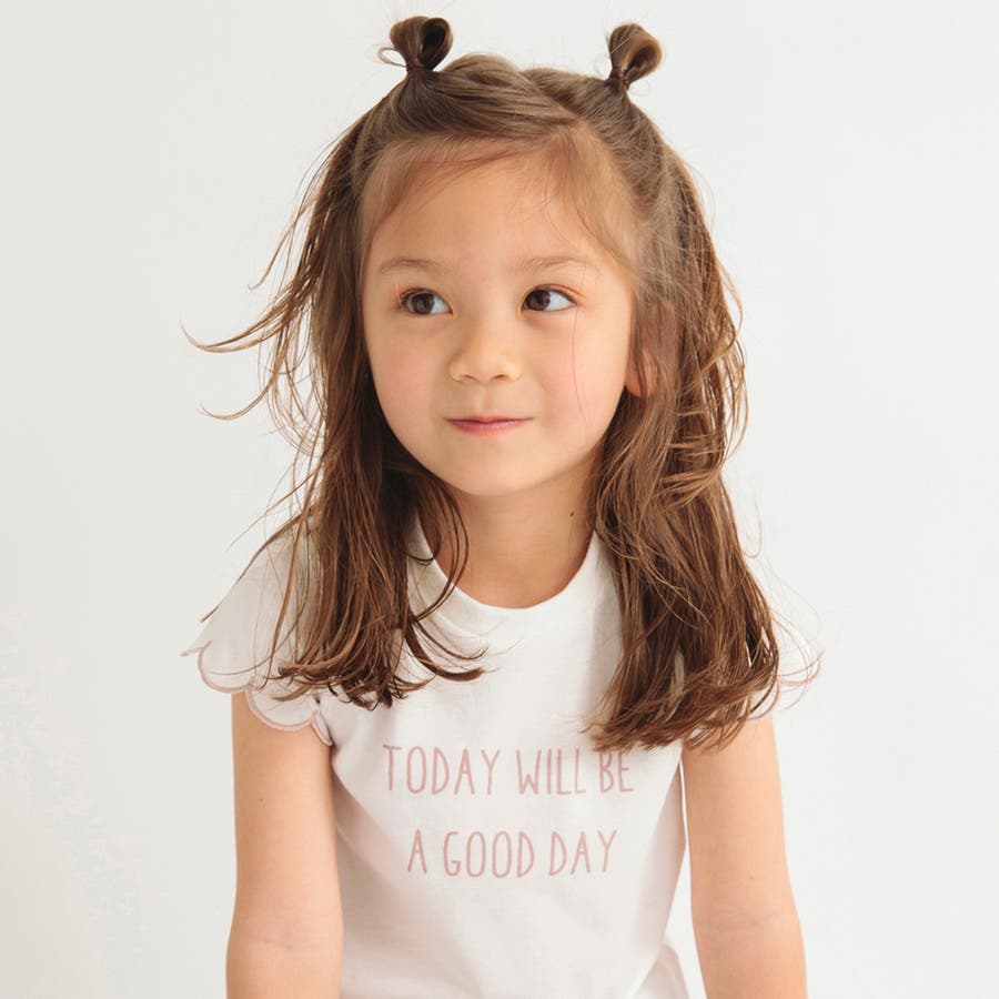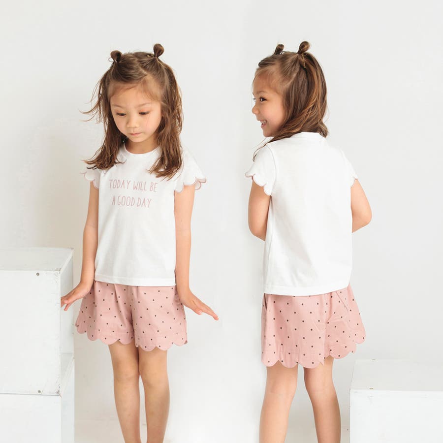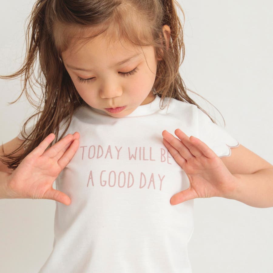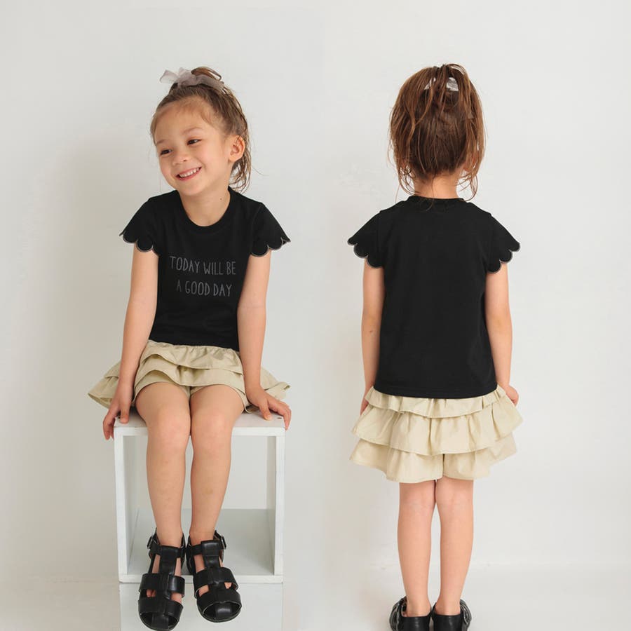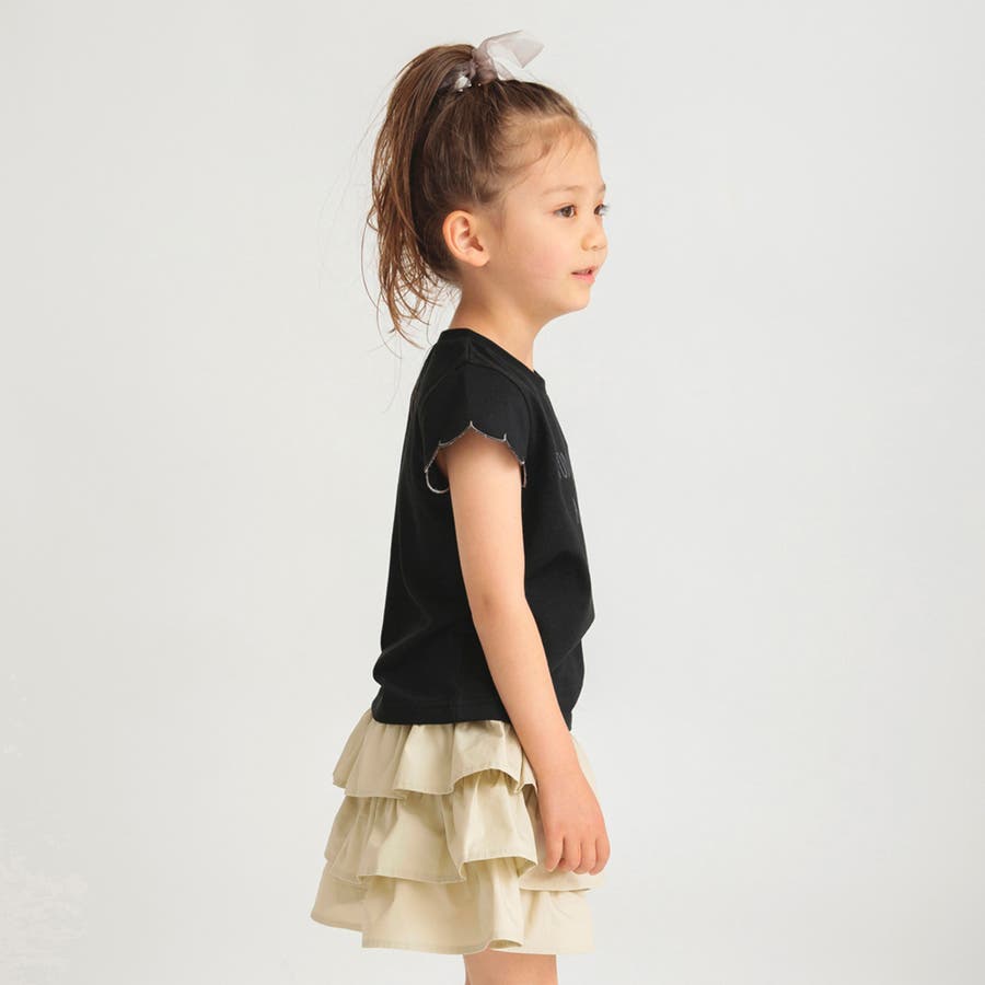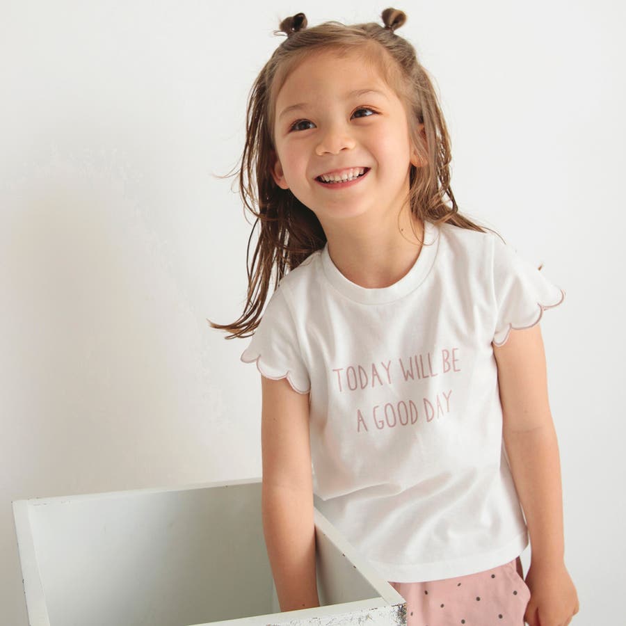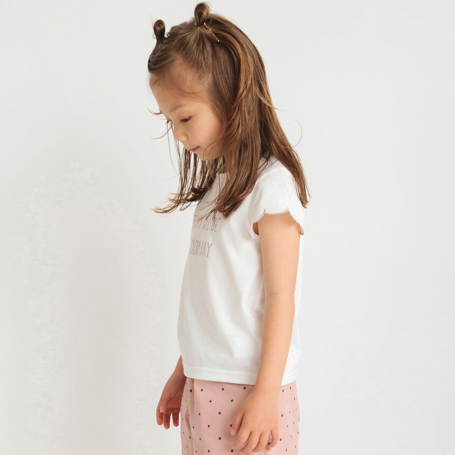 【プチプラ】【おそろい】スカラップスリーブTシャツ