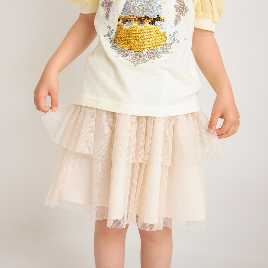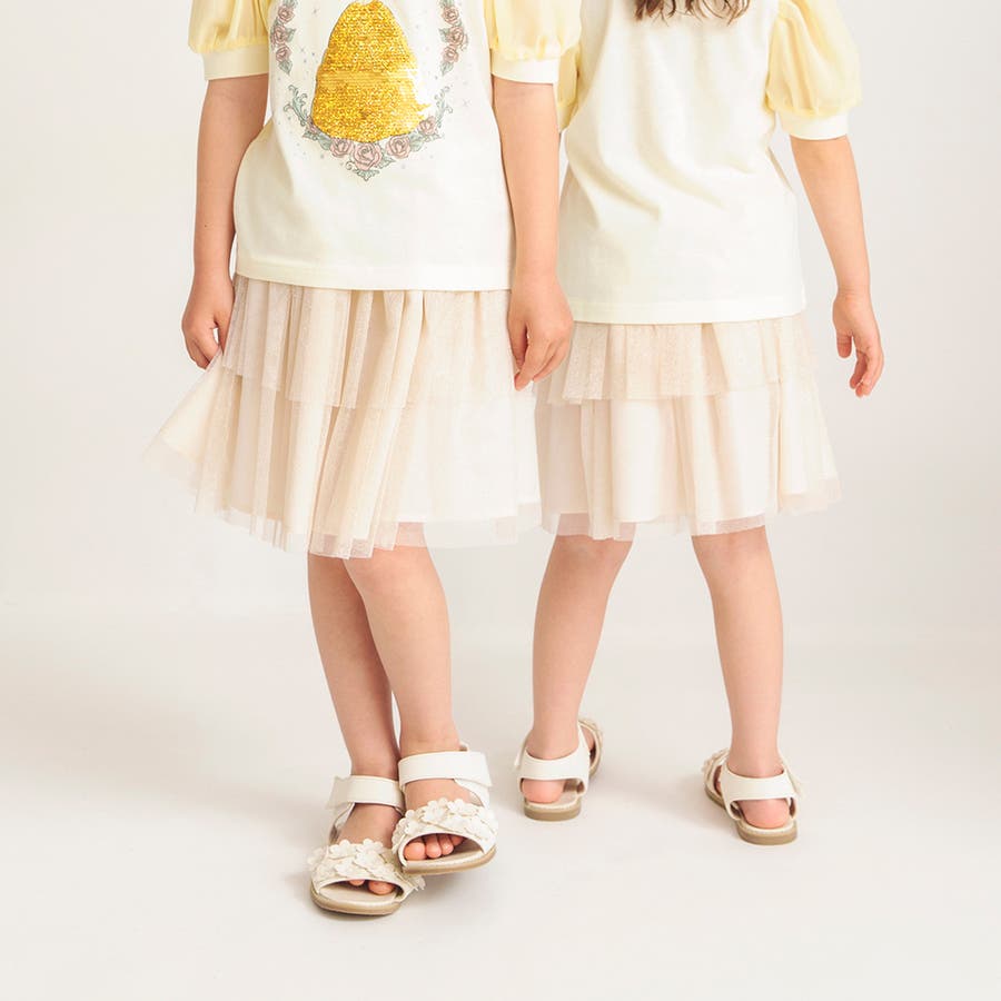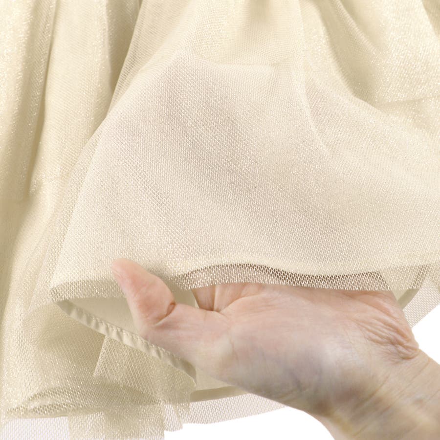 アイボリーのチュールはラメがキラキラとなっていて、