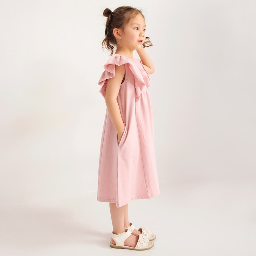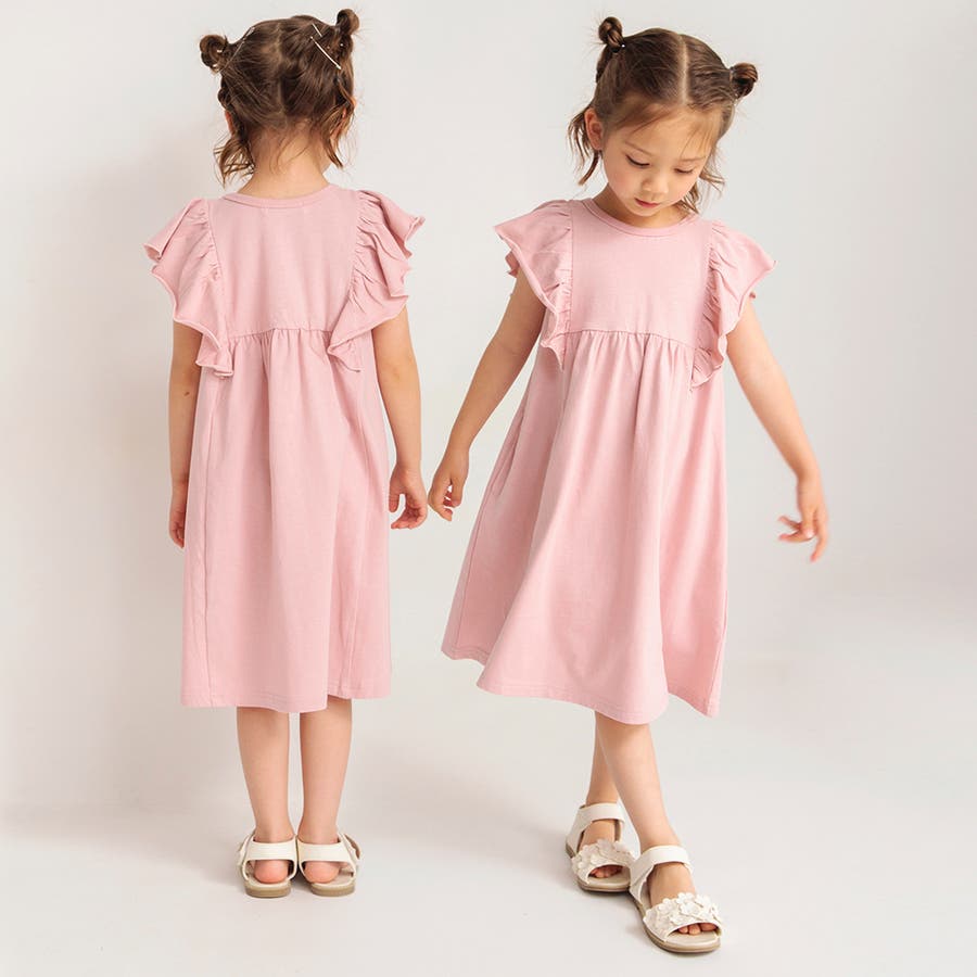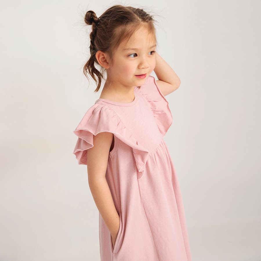 【ピンク】フリル付きカットソーワンピース