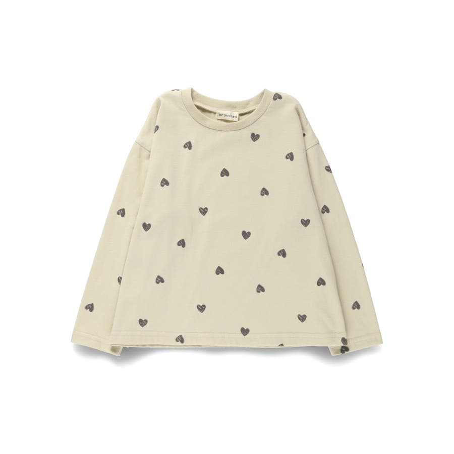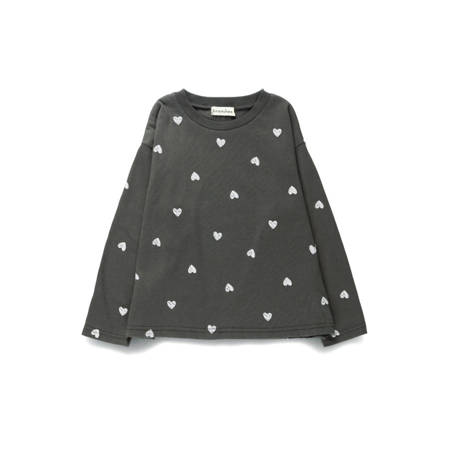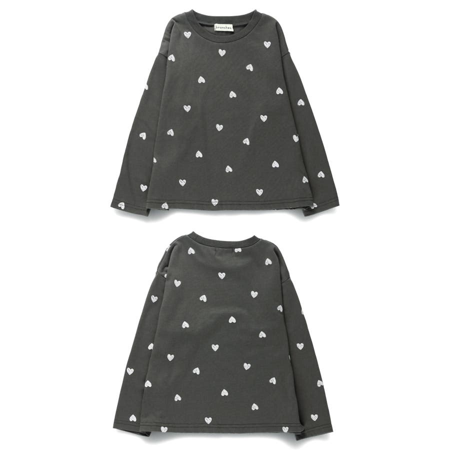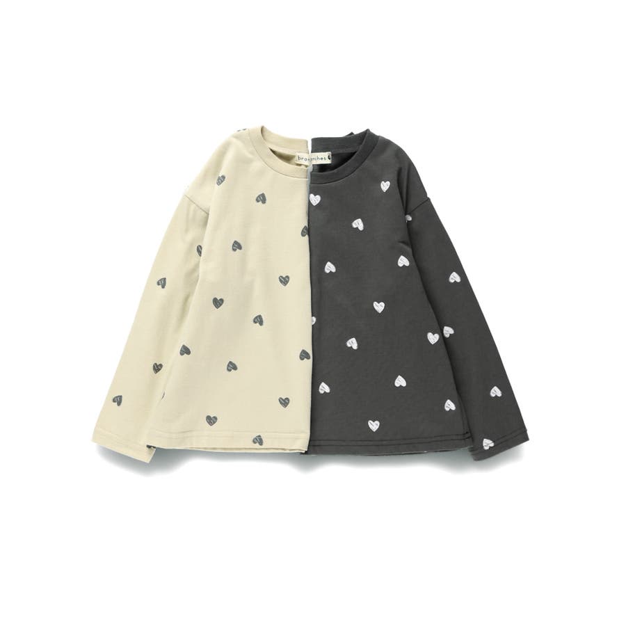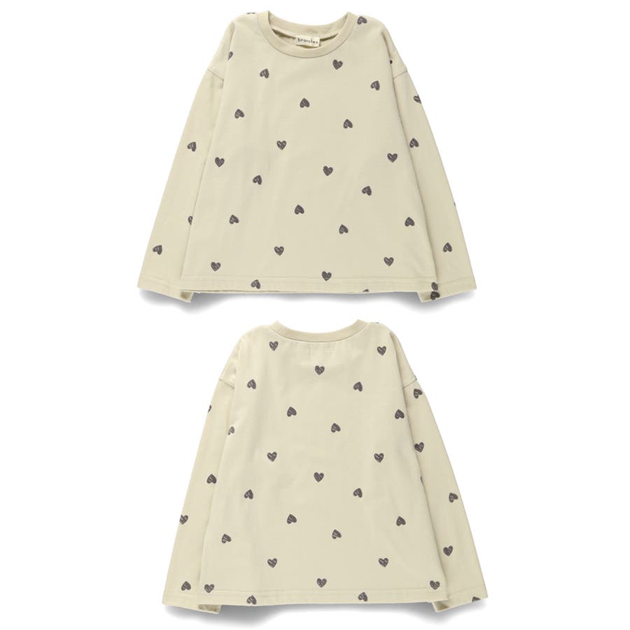 ベージュとチャコールグレーは手書き風ハートの総柄プリント