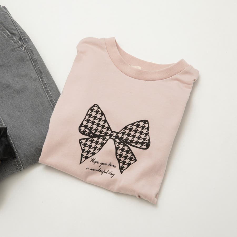 アイボリーとピンクは可愛らしいリボンのプリント。