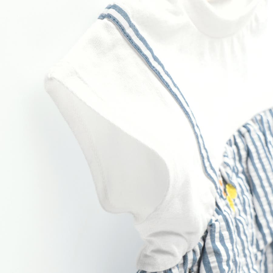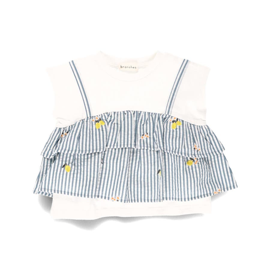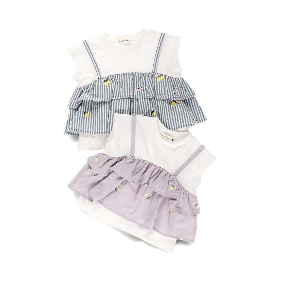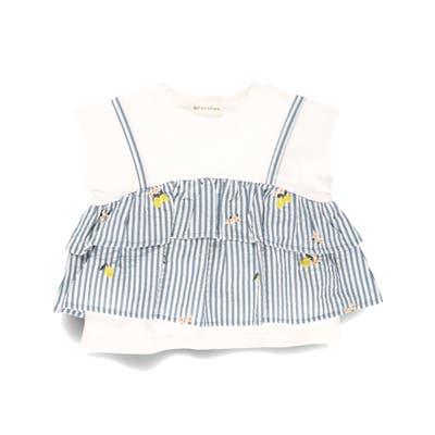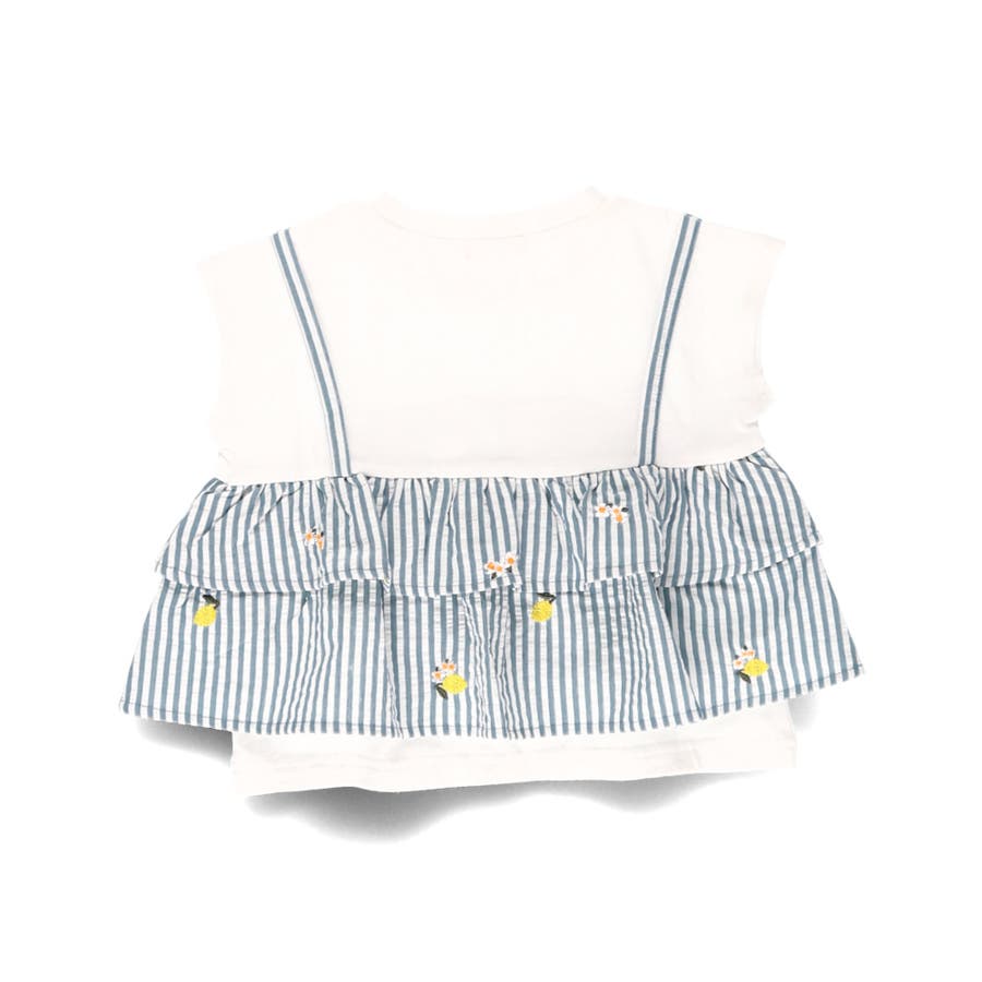 キッズ女児:12-5206-161 【おそろい】レモン&フラワー総柄刺しゅうドッキングTシャツ