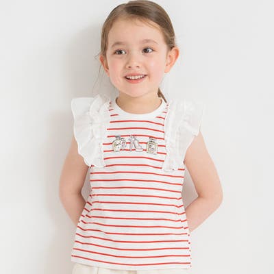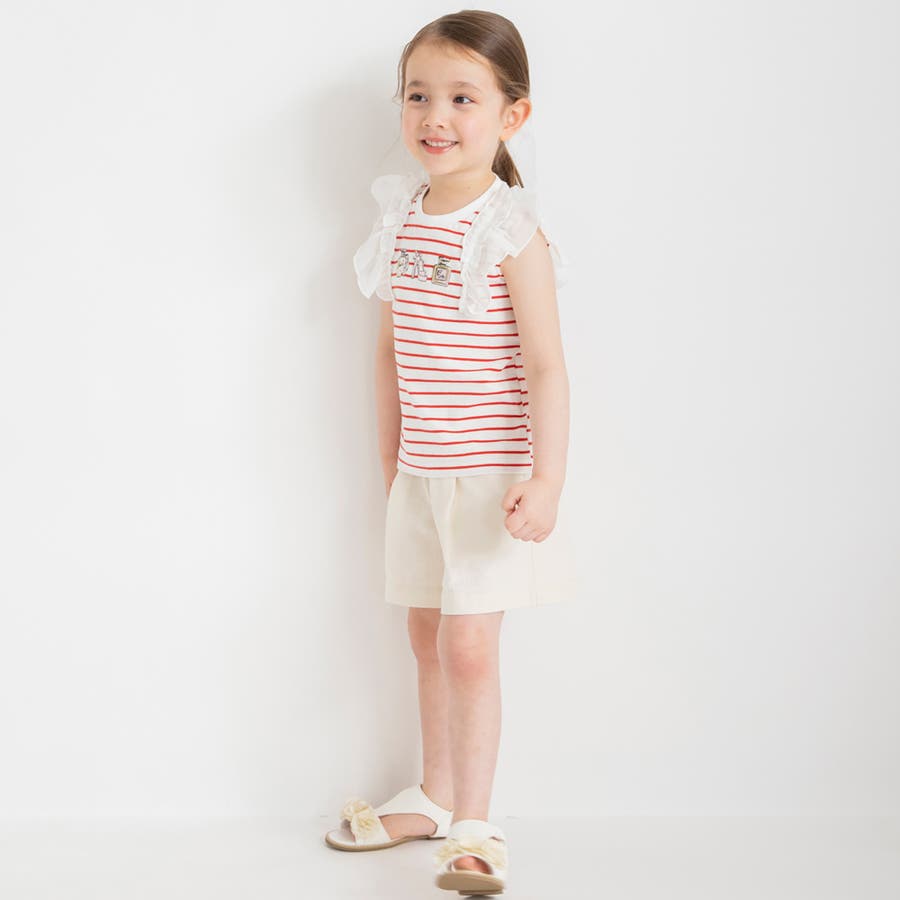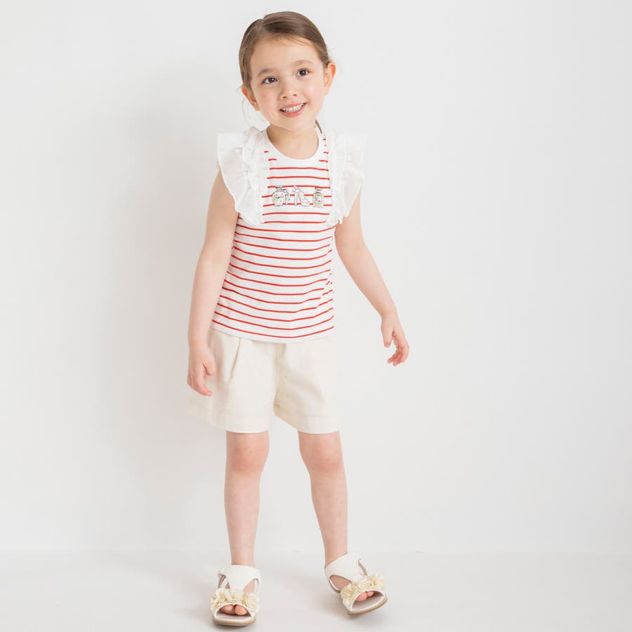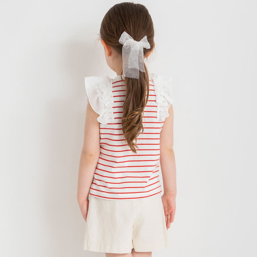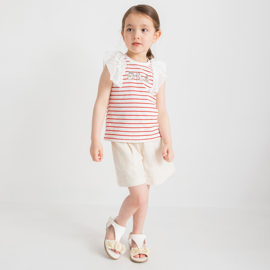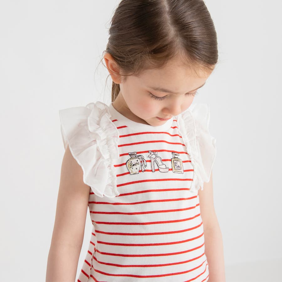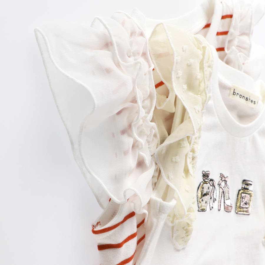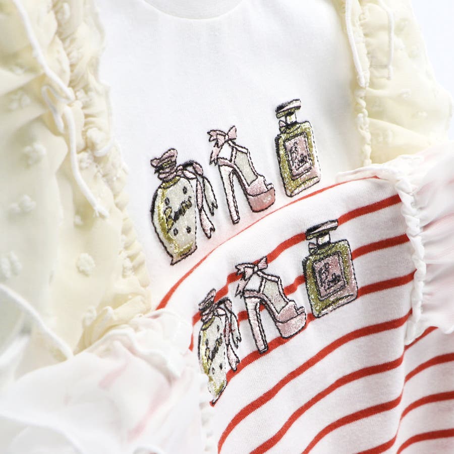 素材 | 本体:綿100% リブ部分: :綿96% ポリウレタン4% フリル部分:ポリエステル100% 刺繍糸:ポリエステル100% |
