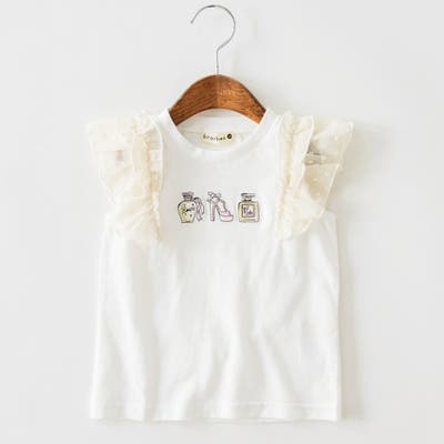 モチーフ刺繍肩フリルTシャツ/JUN IIDA/綿100%/シフォン