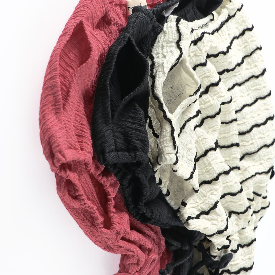 ・素材に表面感があり、汗をかいてもべたつきにくく、柔らかく軽やかで快適な素材感です。